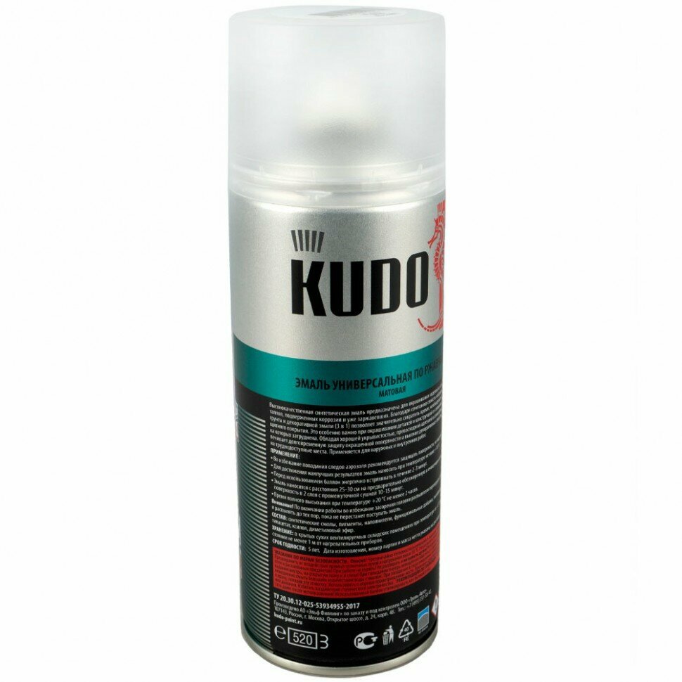 грунт-эмаль аэрозольная KUDO по ржавчине 520мл RAL9003 белая арт.KU-319003