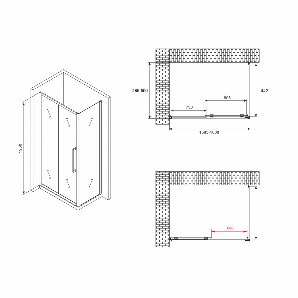 Душевой уголок Abber Schwarzer Diamant 50х160х195 см AG30160MH-S50M