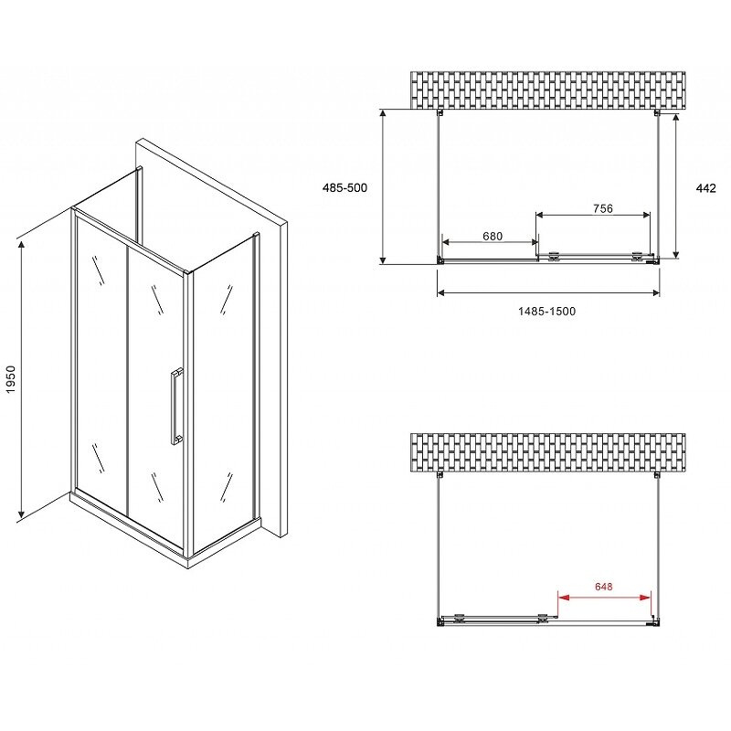 Душевой уголок Abber Schwarzer Diamant 50х150х195 см AG30150MH-S50M-S50M