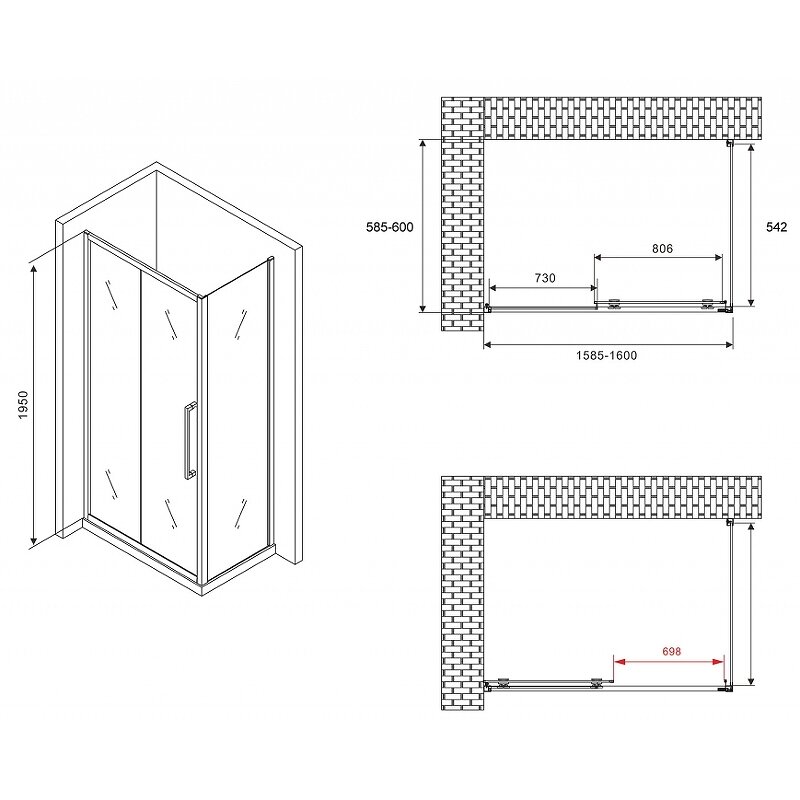 - Регулировочные размеры (ШхД): 1585-1600х585-600 мм.