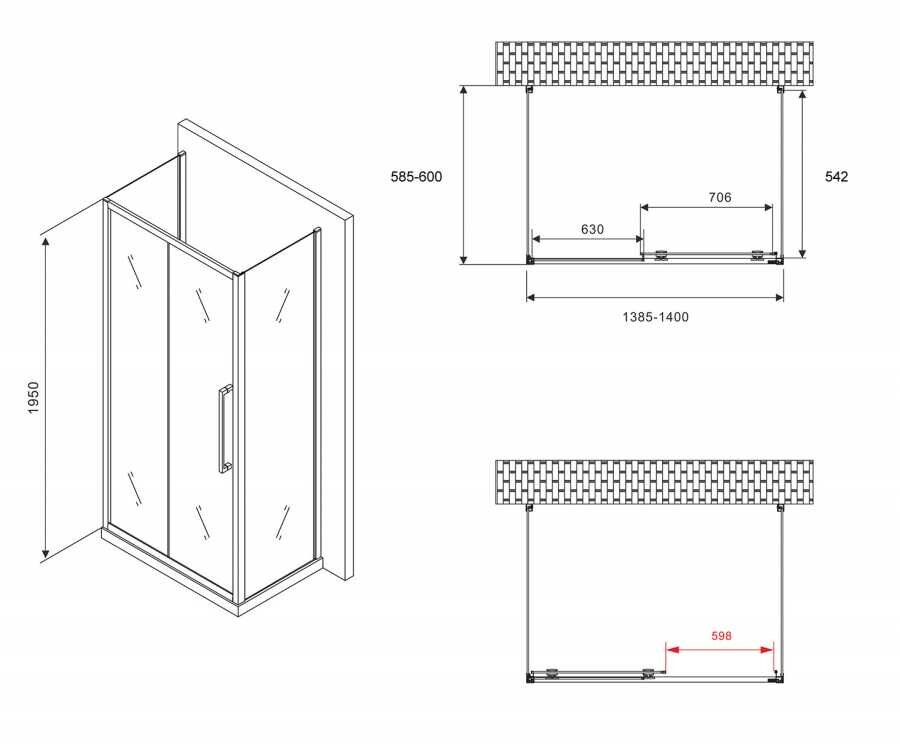 Душевой уголок Abber Schwarzer Diamant 60х140х195 см AG30140BH-S60B-S60B