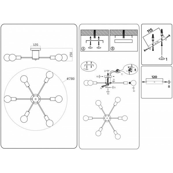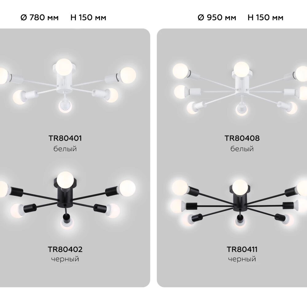 | Номенклатура | TR80402/6 BK черный E27/6 max 60W D780*150 |