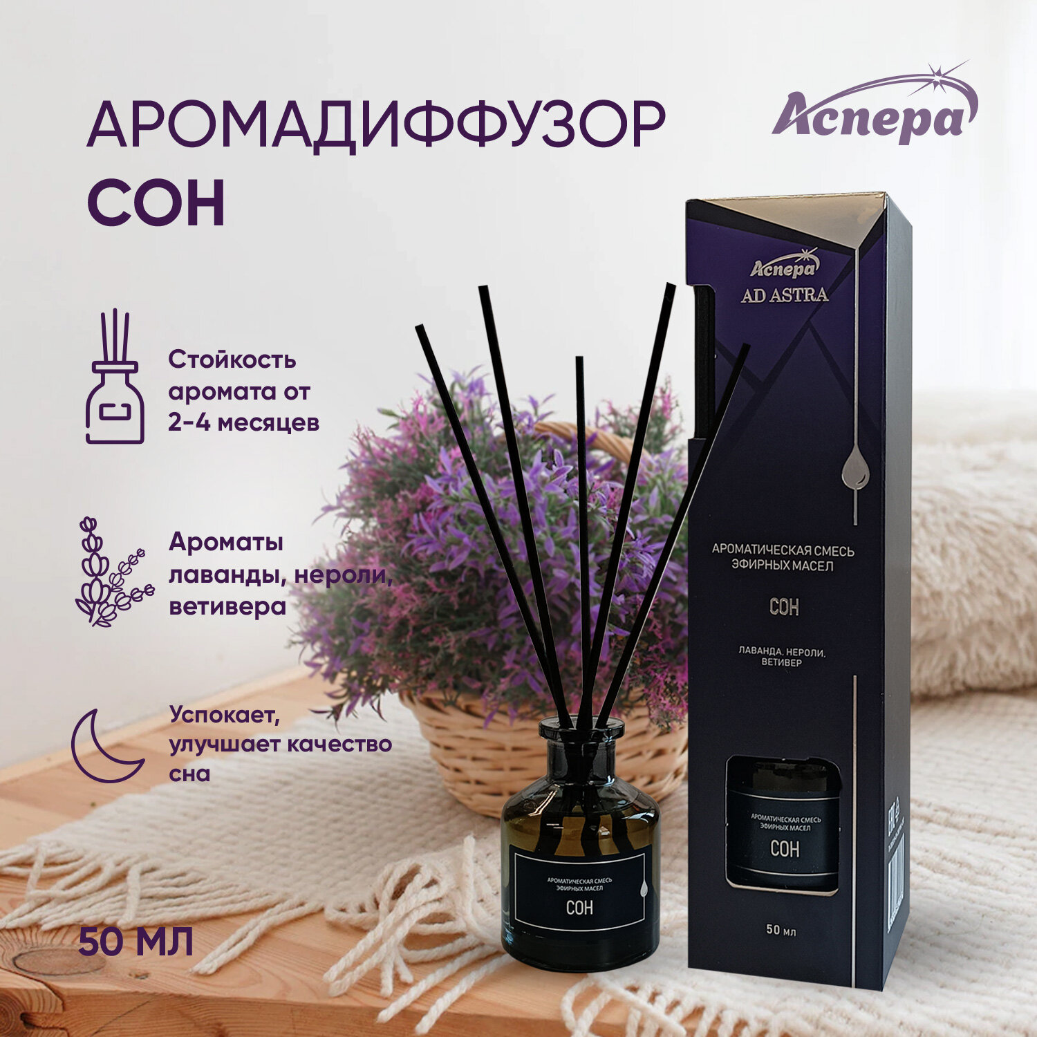Ароматическая смесь эфирных масел Сон диффузор 50мл АСПЕРА