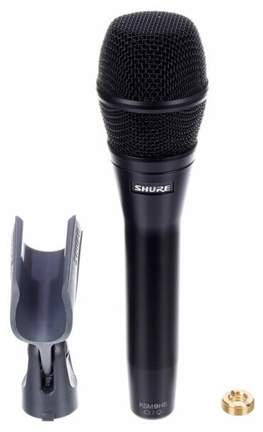 Профессиональный конденсаторный микрофон от известной американской компании SHURE был специально разработан для вокальных выступлений профессиональных исполнителей, имеет встроенные шумоподавляющие фильтры, которые не пропускают внешние шумы и позволяют использовать данное устройство для живых сценических выступлений или для записи голоса в студийных условиях. Он имеет двойной конденсаторный капсуль с возможностью изменения диаграммы направленности с гиперкардиоидной на субкардиоидную и наоборот. Это позволяет использовать данный микрофон в самых сложных условиях (сторонние шумы) и при этом передавать каждую деталь голоса. Таким образом идеальное качество звукопередачи, прочный металлический корпус с эргономичным дизайном и применение качественных комплектующих, делают данный микрофон идеальным выбором для профессиональных вокальных исполнителей.