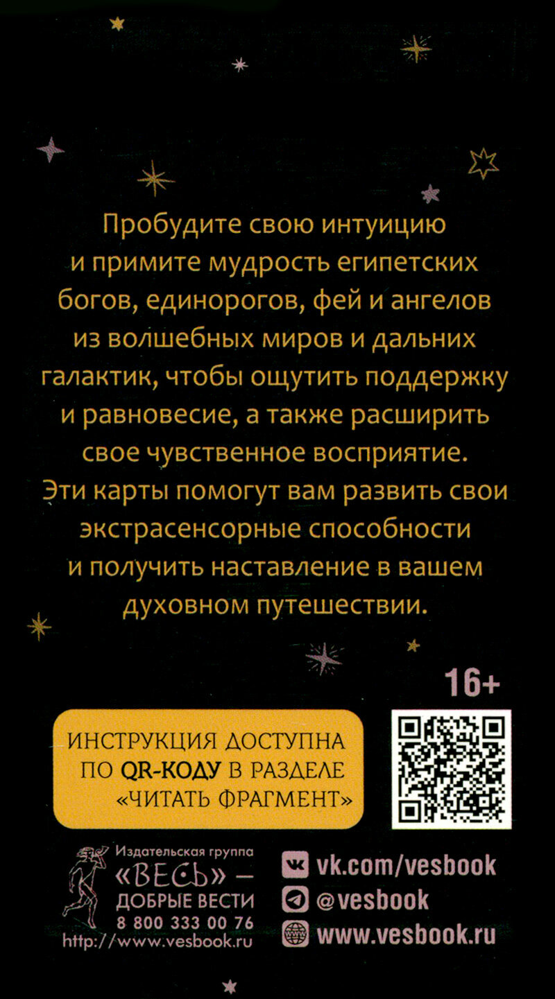 Пробудите свою интуицию и примите мудрость египетских богов, единорогов, фей и ангелов из волшебных миров и дальних галактик, чтобы ощутить поддержку и равновесие, а также расширить свое чувственное восприятие. Эти карты помогут вам развить свои экстрасенсорные способности и получить наставление в вашем духовном путешествии.