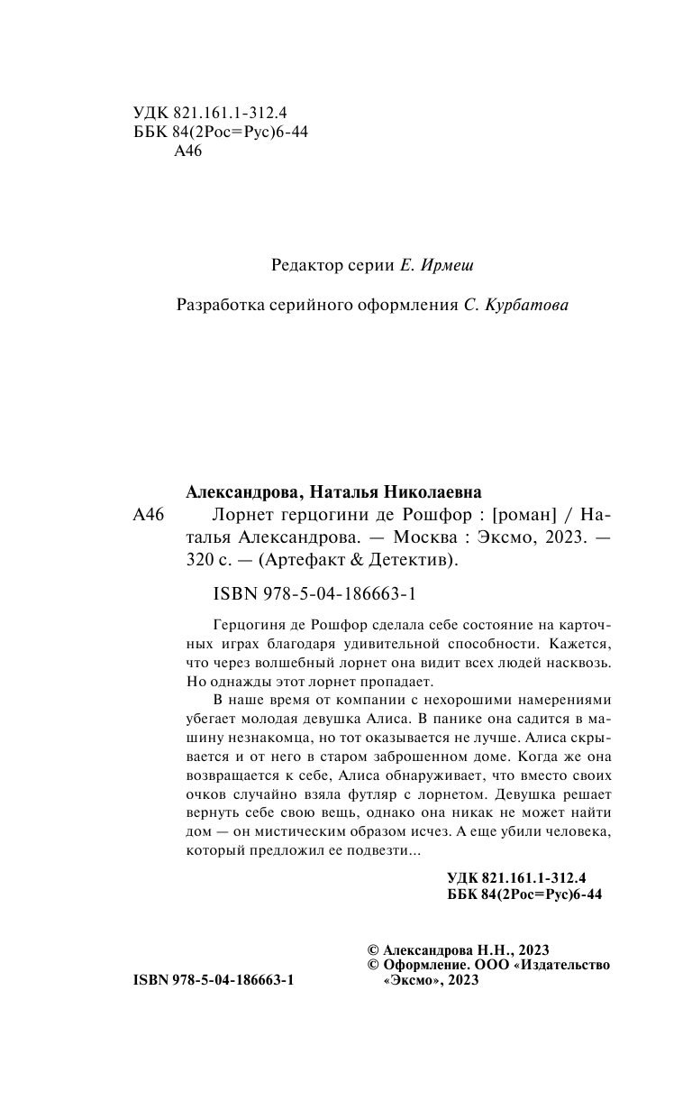 Лорнет герцогини де Рошфор (Александрова Наталья Николаевна); ООО "Издательство "Эксмо", 2023