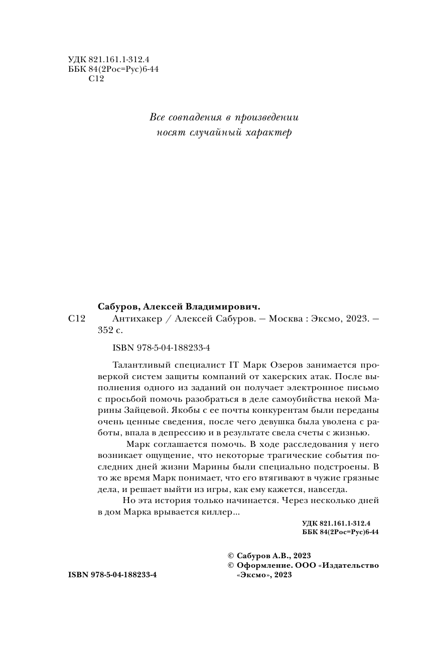 Книга: Антихакер (Сабуров Алексей Владимирович); ООО "Издательство "Эксмо", 2023