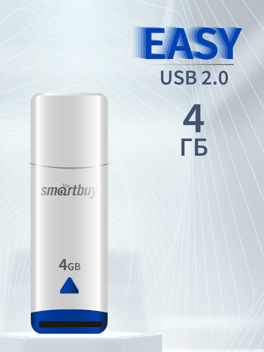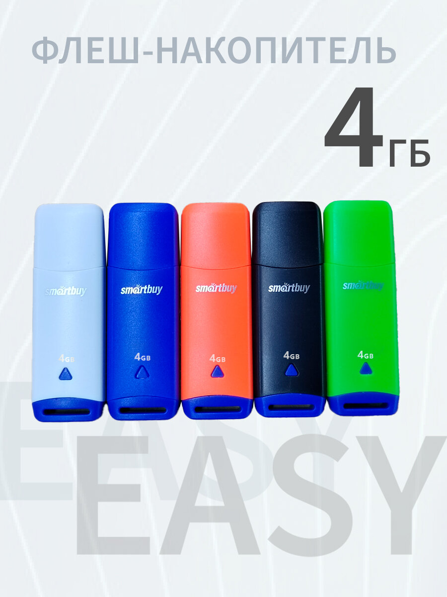 Флеш-накопитель USB 4GB SmartBuy Easy. USB-накопитель EASY изготовлен в виде функционального флэш-накопителя. Флешка имеет объем 4 Гб, 8 Гб, 16 Гб, 32 Гб, 64 Гб, 128 Гб и интерфейс USB 2.0. Скоростная флешка USB отлично подойдёт для быстрой передачи данных. Флеш карта хорошо подойдет для компьютера, для ноутбука, в автомобиль или музыкальную колонку. Высокое качество, лаконичный дизайн. Флеш-память Easy позволит вам достичь совершенно нового уровня комфорта и эффективности в вашей занятой мобильной жизни. Флэш карта с аксессуаром станет полезным подарком не только Вашим близким людям, но и друзьям.