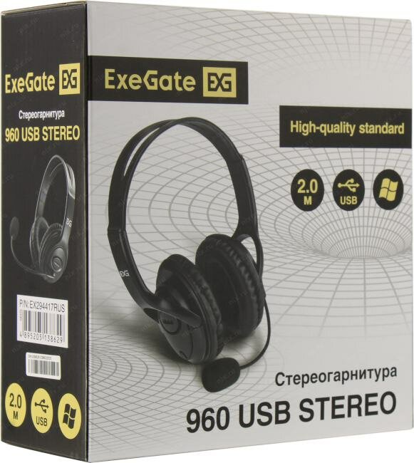 Наушники Exegate EX294417RUS полноразмерные с микрофоном (гарнитура) (USB динамик 40 мм 20-20000Гц длина кабеля 2м управление громк 960 USB STEREO