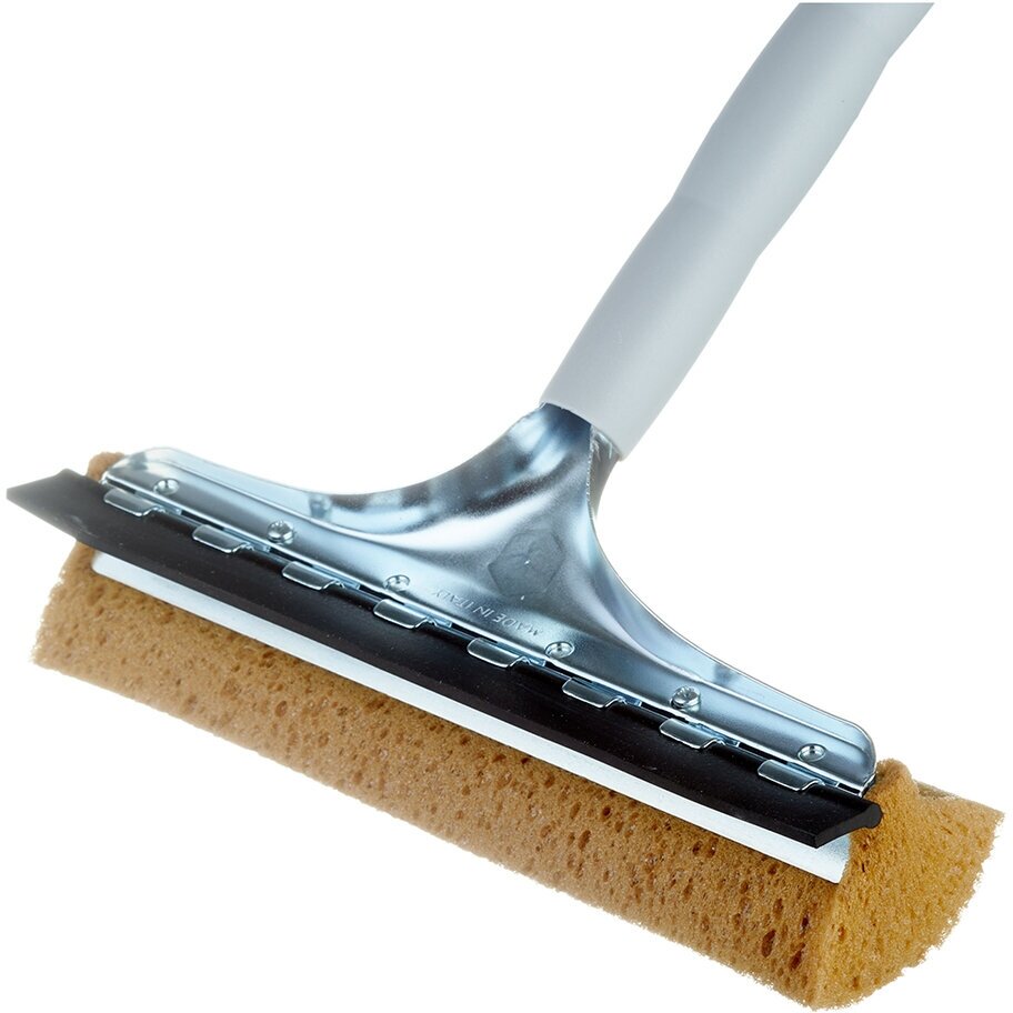 Скребок для мытья окон с телескопической, металлической ручкой, оснащенной специальным фиксатором, с помощью которого меняется угол насадки, что позволяет решить проблему, связанную с мойкой окон в труднодоступных местах. Хранить в сухом помещении.