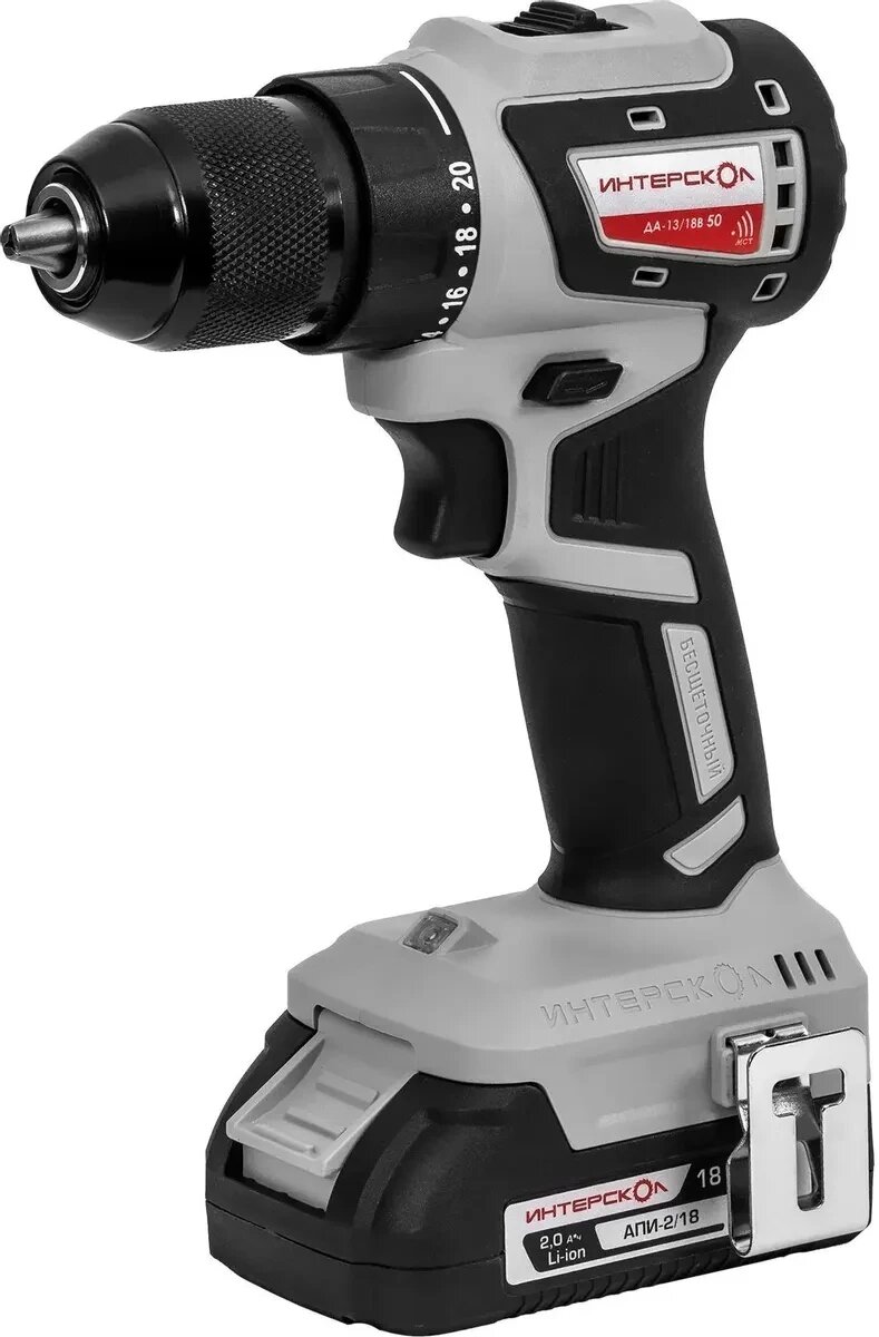 Профессиональная аккумуляторная ударная двухскоростная дрель-шуруповерт Интерскол, ДАУ-13/18В 80 для работы с крепежом, сверления отверстий и выполнения сопутствующих работ c вентильным бесщеточным приводом.