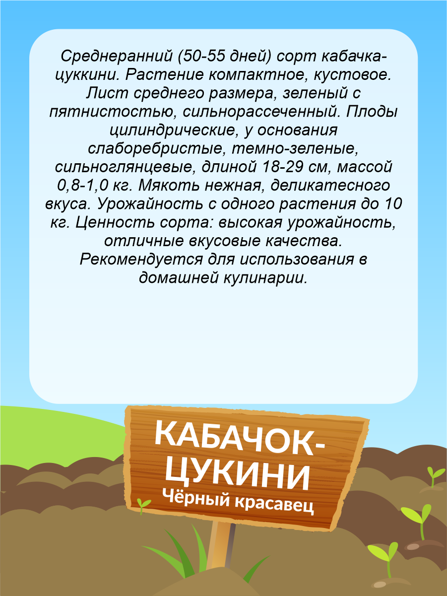 Конечно же данный сорт меня привлек своим названием. Черный красавец-ожидала темнокожие кабачки, ну хотя бы темного зеленого цвета, а по факту оказался обычный зеленый. У меня 6 кустов, плодоносят по 4 штуки одновременно. Кабачки не пузатые, семян внутри мало. Вкус-абсолютно обычный кабачок