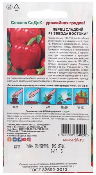 Сладкие перцы с высокой урожайностью // Серия «Звезда Востока»