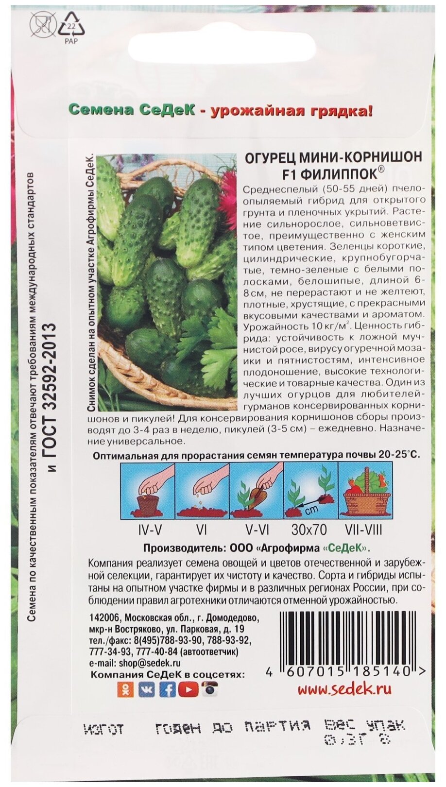 - Огурец мини-корнишон Филиппок F1. СеДеК