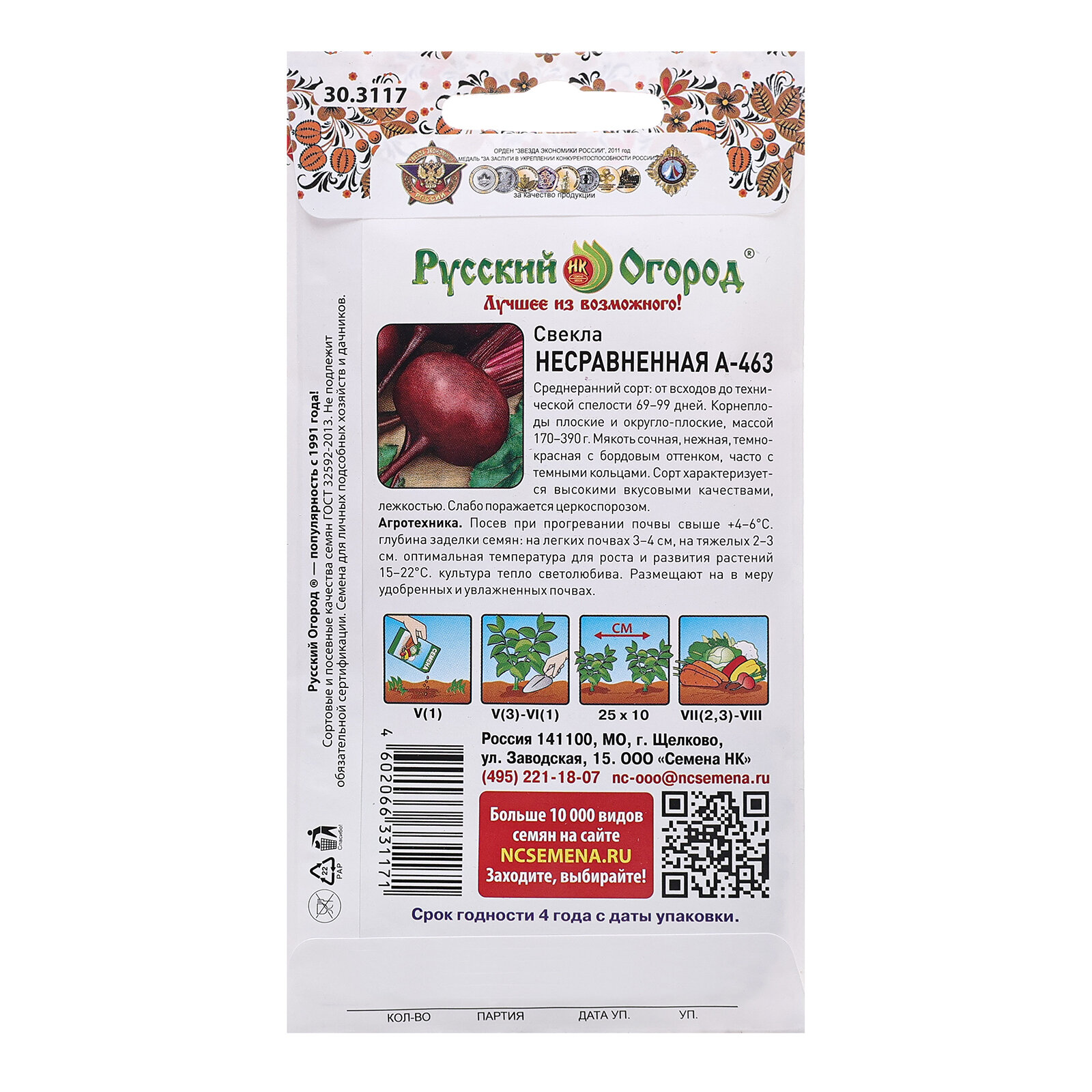 Тип товара: Семена овощей, зелени, ягод