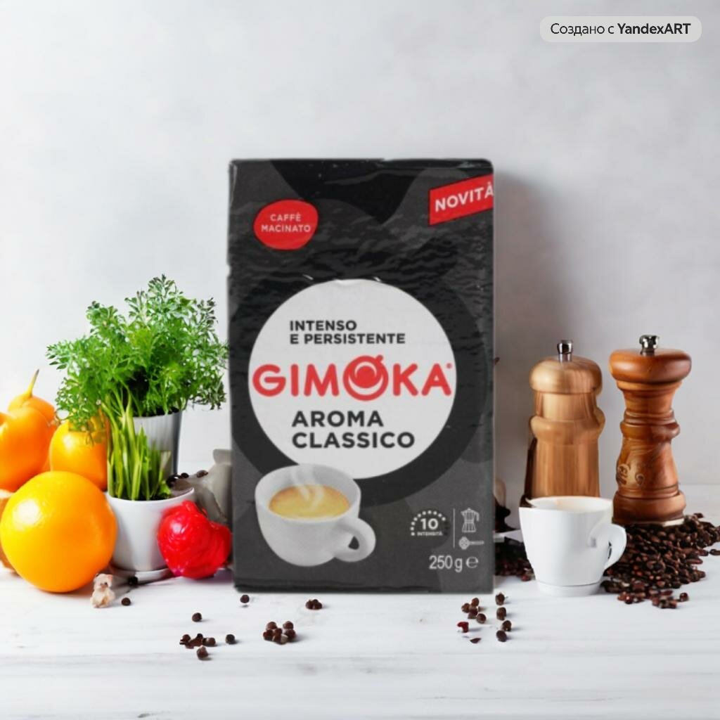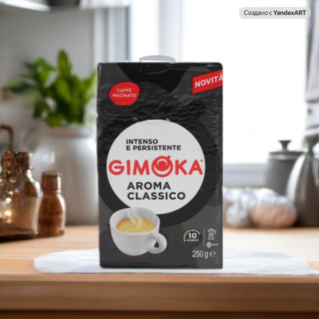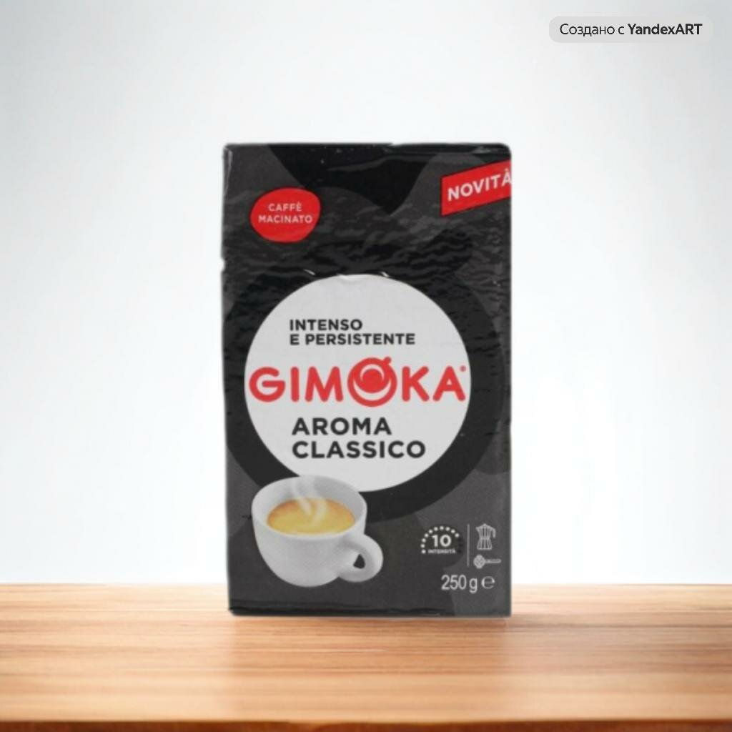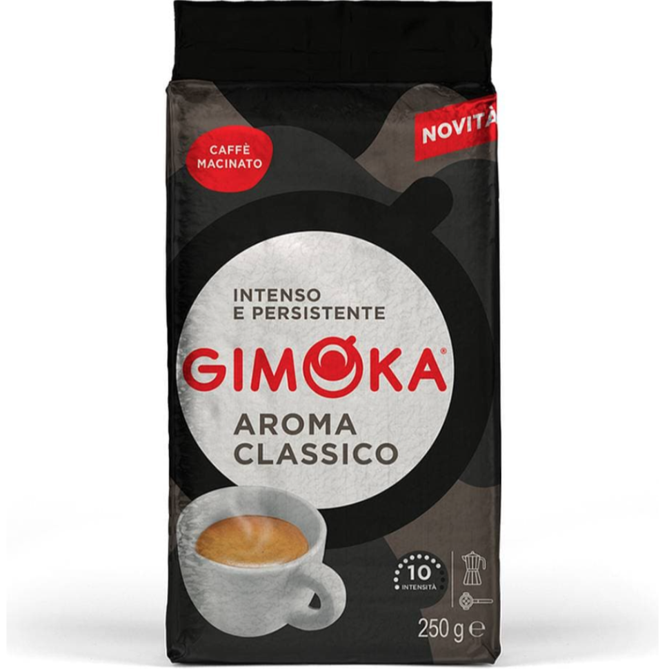 Кофе жареный молотый Джимока Арома Классико. Насыщенный вкус, с интенсивным ароматом, эта смесь имеет легкий и сбалансированный вкус.Кофе Gimoka Aroma Classico - это уникально подобранный кофейный купаж из арабики и робусты. Кофе для настоящего эспрессо. Идеально подходит для приготовления Мокка.