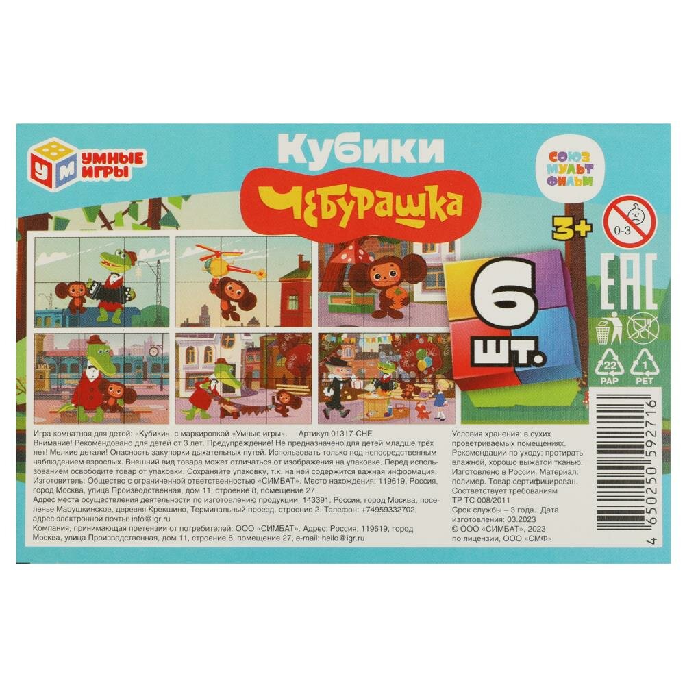 Набор 6 кубиков Умные игры Союзмультфильм Чебурашка 120х80х40 мм