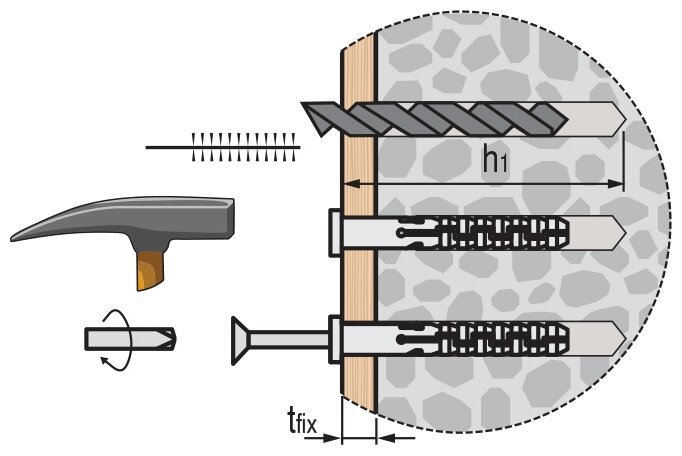 | Применение продукта | Дюбель применяется для крепления в бетоне, кирпиче, газобетоне. Дюбель применяется для сквозного крепления через прикрепляемый материал. |