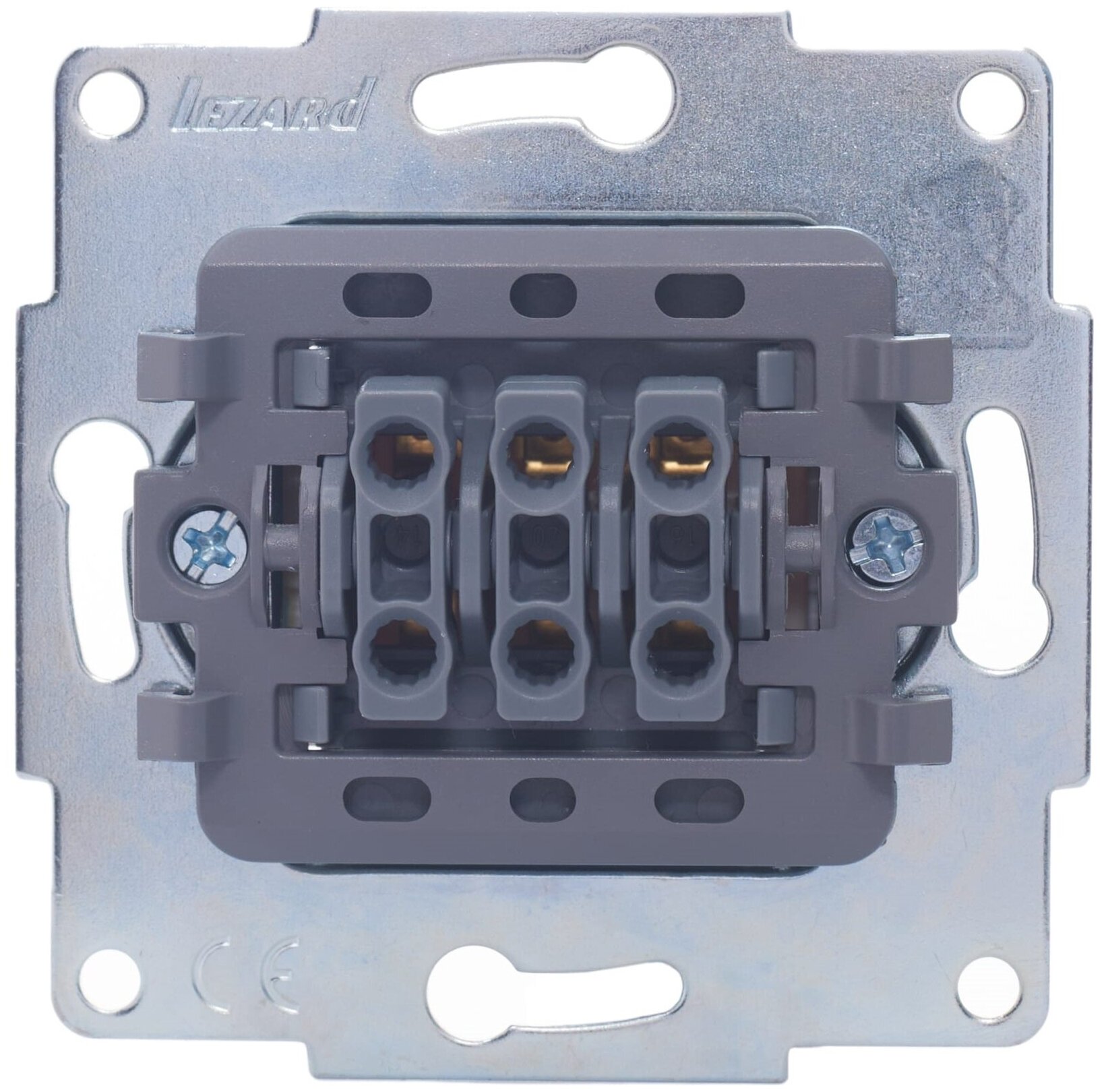 **Выключатель Lezard Vesna 742-3588-109** предназначен для управления работой одним осветительным прибором. Клавиша модели изготовлена из ударопрочного ABS-пластика. Крепеж осуществляется на специальные винтовые зажимы, обеспечивающие максимально надежное соединение. Внутри блока предусмотрены крепления для проводов и кабелей.