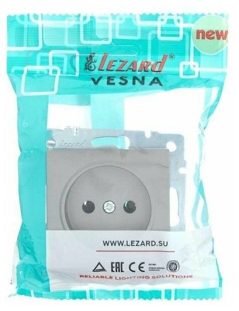 **Розетка Lezard Vesna 742-3588-121B** — встраиваемая модель, предназначена для установки в помещениях жилого, общественного, коммерческого назначения. Корпус изготовлен из прочного ABS-пластика, устойчивого к деформации и выгорания.