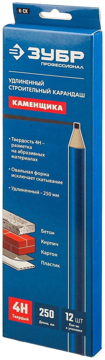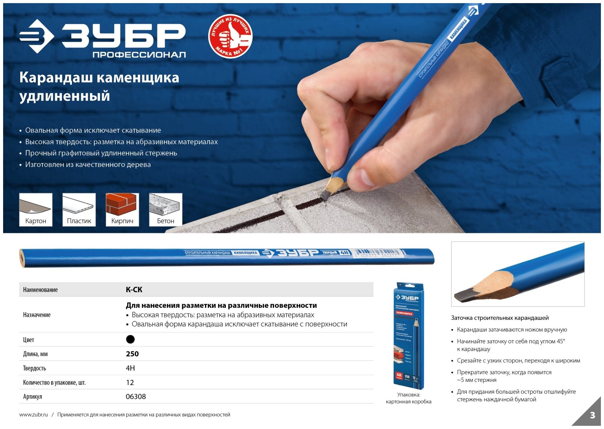Строительный карандаш каменщика имеет овальную форму, что позволяет ему не скатываться с наклонных поверхностей. Предназначен для проведения разметки на бетоне, камне, штукатурке.