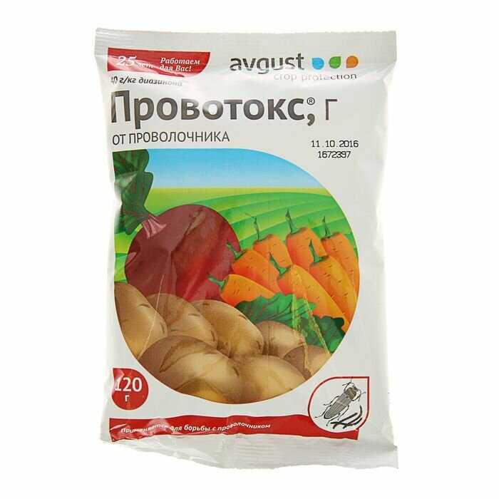 От состояния почвы во многом зависит урожай. Это связано с наличием в ней вредителей и патогенов. Проволочник - один из самых неуловимых врагов картофеля. Он прогрызает ходы в клубнях. Поврежденные, они плохо хранятся, быстрее поражаются грибными и бактериальными заболеваниями. Проволочником называют желто-коричневую личинку жука-щелкуна, действительно похожую на кусочек проволоки. Избавится от проволочника - непростая задача. Взрослый жук имеет жесткие прочные покровы, а личинка проволочника может перемещаться в почве на довольно больших глубинах, оставаясь недоступной для человека. Личинки повреждают не только картофель. Семена растений, корни, луковицы и клубни цветов - любимые лакомства вредителя. Несколько гранул Провотокса в лунку при посадке картофеля - и проволочника вы не увидите с весны до осени. Обладает контактно-кишечным механизмом действия. Уничтожает личинок проволочника и снижает число поврежденных клубней. Не вызывает привыкания.