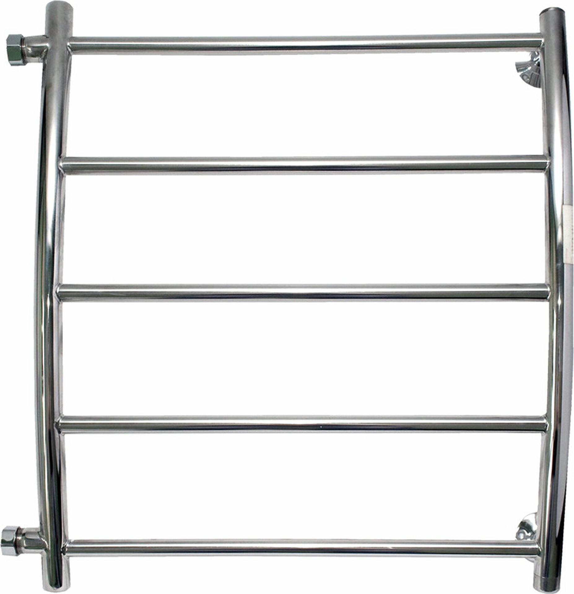 Водяной полотенцесушитель из нержавеющей стали. Межцентровое расстояние 500 мм, ширина 500 мм, диаметр подключения 3/4 дюйма. Дуговые перекладины, в комплекте крепления к стене.