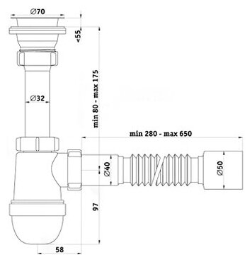 | Диаметр выпуска (отверстия для слива) | 70 |
