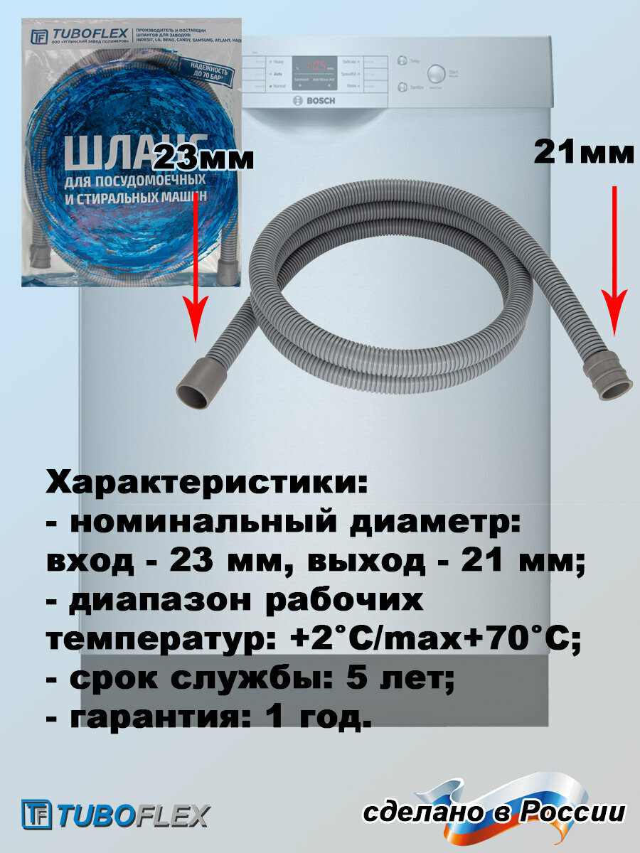 Гибкий шланг предназначен в качестве комплектующего к стиральной машине. Изделие выполнено из материала, устойчивого к механическим воздействиям. Такой шланг способен выдерживать сильный напор воды. На концах изделия предусмотрена специальная резьба для надежного и качественного соединения со сливной трубой и стиральной машиной.