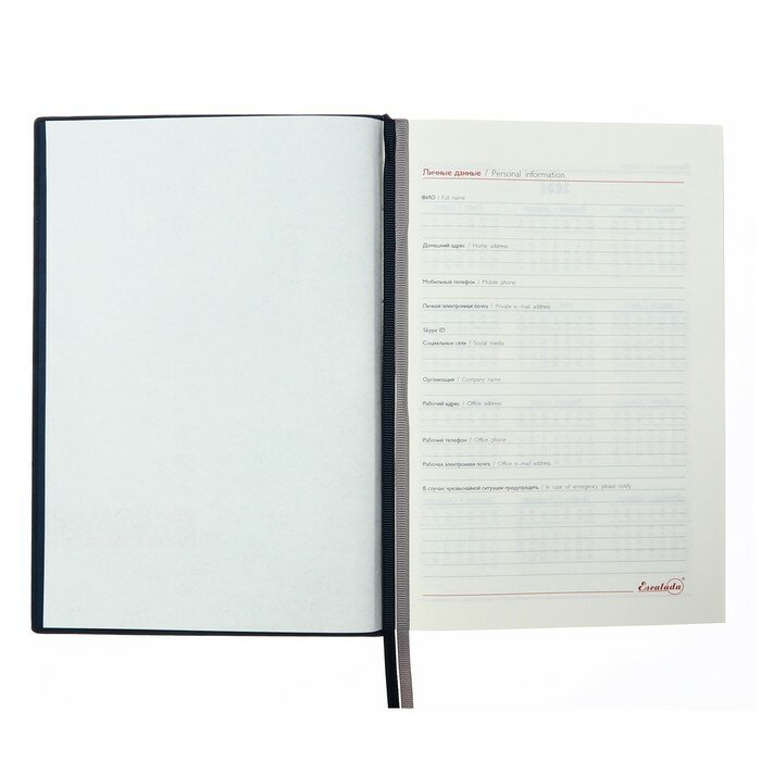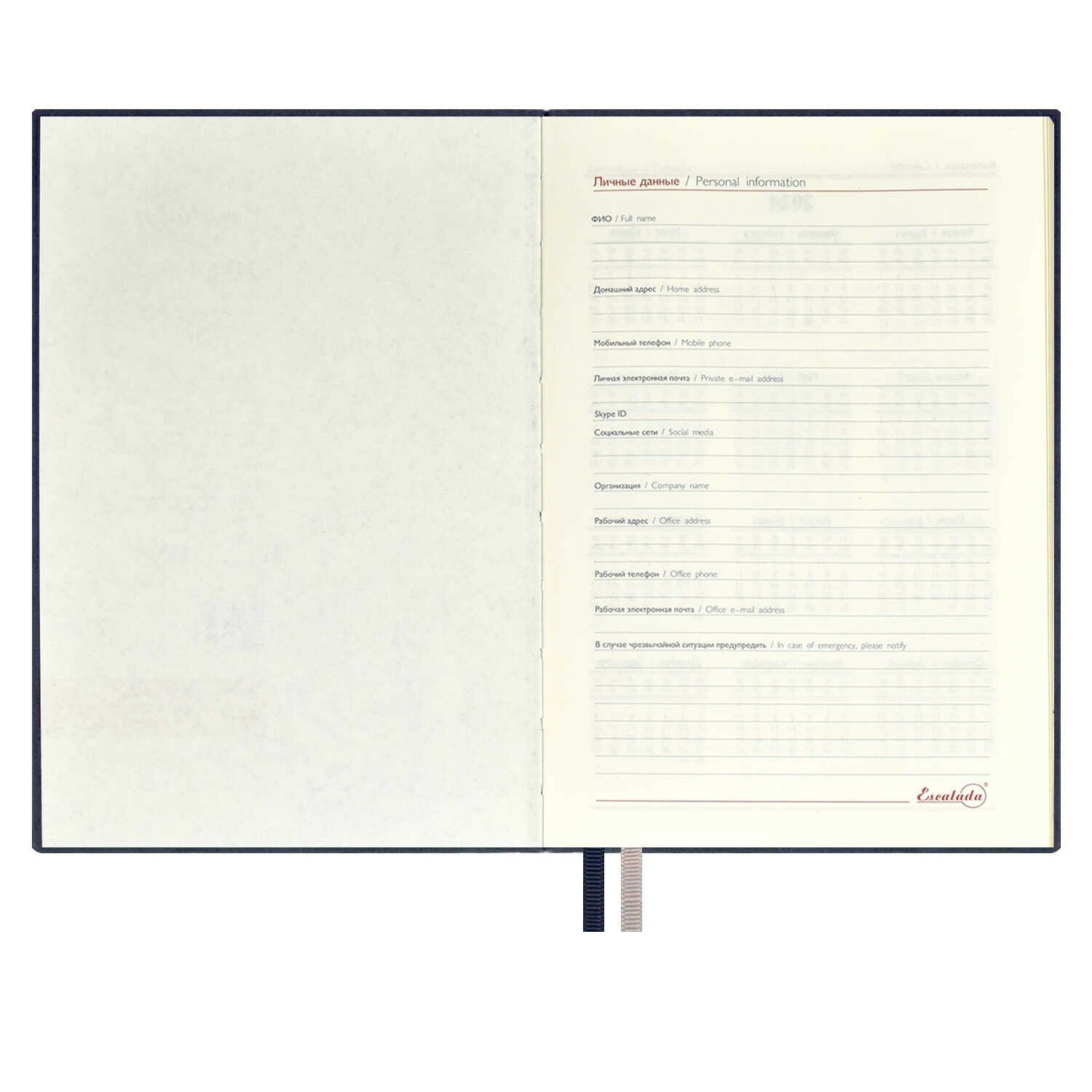 Ежедневник датированный 2024 ESCALADA, формат А5 (146x211 мм), 176 л. Обложка: твёрдый переплёт, запаянный край, 3D-дизайн, тиснение фольгой, нет, скруглённый корешок, прямые углы обложки. Внутренний блок: ниткошвейный, кремовый офсет 70 г/м?, печать в две краски (линия), прямые углы блока, нет, есть. Красочность форзаца: печать пантоном. Отделка среза: фольгирование. Закладка: два ляссе. Каптал: есть. Индивидуальная упаковка: промостикер + подарочная картонная коробка с ПВХ-крышкой + ПЭТ-пакет.