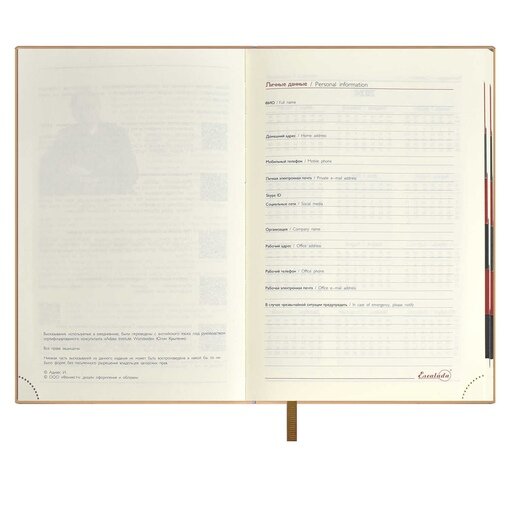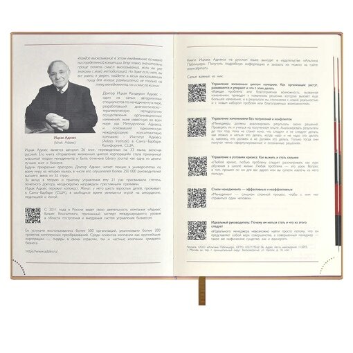 Ежедневник датированный 2024 ESCALADA, формат А5 (146x211 мм), 176 л. Обложка: мягкий переплёт, запаянный край, блинтовое тиснение, нет, скруглённый корешок, прямые углы обложки. Внутренний блок: ниткошвейный, кремовый офсет 70 г/м?, печать в две краски (линия), прямые углы блока, есть, есть. Красочность форзаца: печать пантоном. Закладка: одно ляссе. Каптал: есть. Особенности: вырубка блока по месяцам, в блоке использованы мотивирующие высказывания одного из известнейших бизнес-консультантов мира, ведущего специалиста в области эффективного управления бизнес-процессами, преподавателя, автора 29 книг – доктора Ицхака Калдерона Адизеса. Индивидуальная упаковка: промостикер + ПЭТ-пакет.