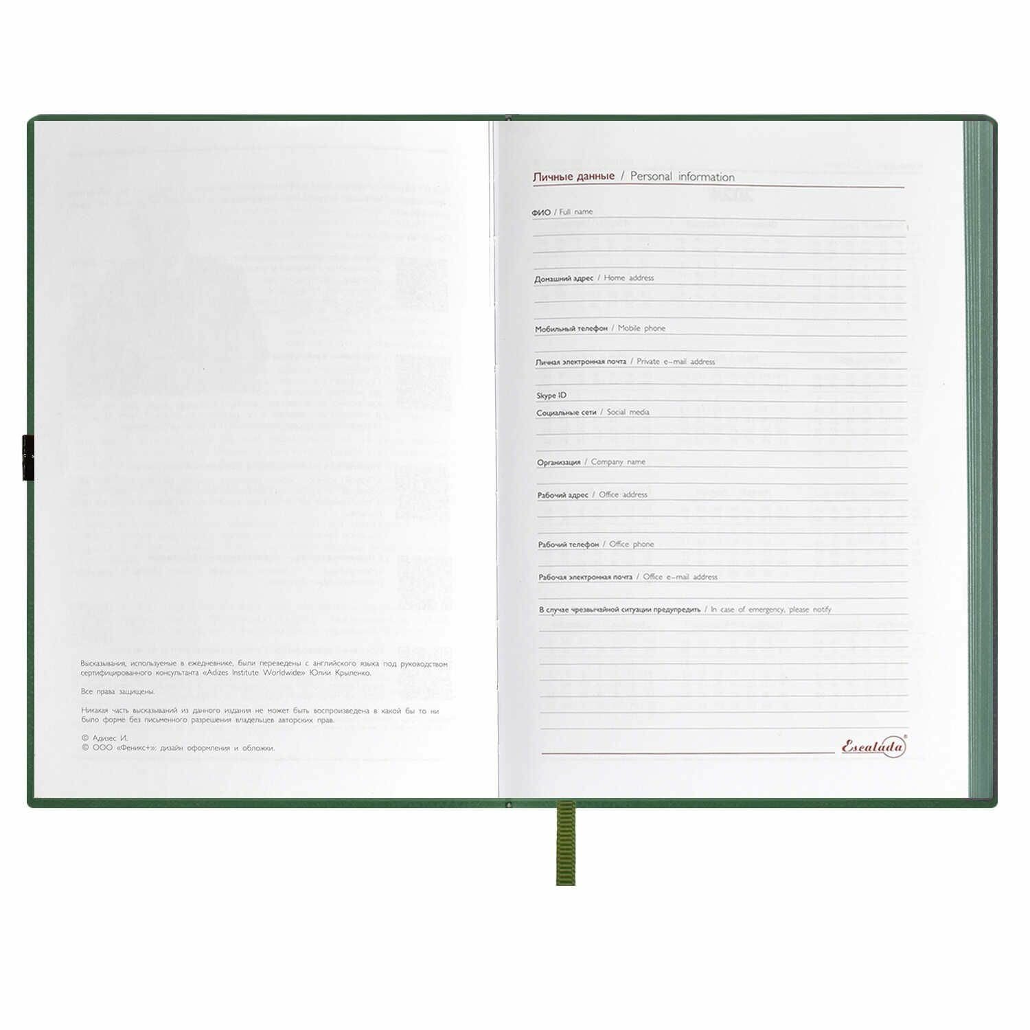 Ежедневник датированный 2024 ESCALADA, формат А5 (146x211 мм), 176 л. Обложка: мягкий переплёт, блинтовое тиснение, нет, скруглённый корешок, прямые углы обложки. Внутренний блок: ниткошвейный, белый офсет 70 г/м?, печать в две краски (линия), прямые углы блока, нет, есть. Красочность форзаца: печать пантоном. Отделка среза: окрашивание пантоном. Закладка: одно ляссе. Каптал: есть. Особенности: в блоке использованы мотивирующие высказывания одного из известнейших бизнес-консультантов мира, ведущего специалиста в области эффективного управления бизнес-процессами, преподавателя, автора 29 книг – доктора Ицхака Калдерона Адизеса, застёжка-резинка. Индивидуальная упаковка: промостикер + ПЭТ-пакет.