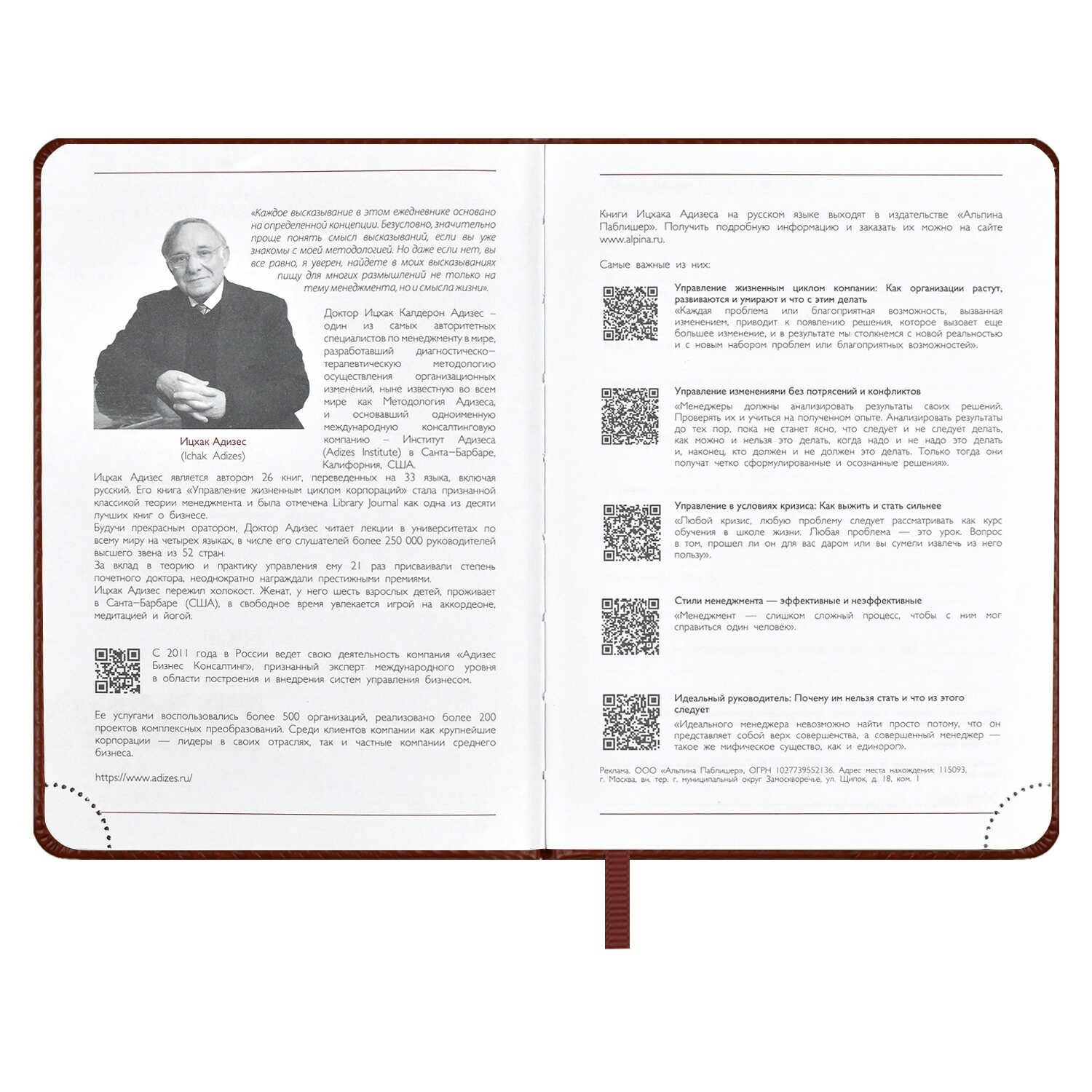 Ежедневник датированный 2024 ESCALADA, формат А6+ (126х174 мм), 176 л. Обложка: твёрдый переплёт с поролоном, блинтовое тиснение, есть, прямой корешок, закруглённые углы обложки. Внутренний блок: ниткошвейный, белый офсет 70 г/м?, печать в две краски (линия), закруглённые углы блока, есть, есть. Красочность форзаца: печать в одну краску. Закладка: одно ляссе. Каптал: есть. Особенности: в блоке использованы мотивирующие высказывания одного из известнейших бизнес-консультантов мира, ведущего специалиста в области эффективного управления бизнес-процессами, преподавателя, автора 29 книг – доктора Ицхака Калдерона Адизеса. Индивидуальная упаковка: промостикер + ПЭТ-пакет.
