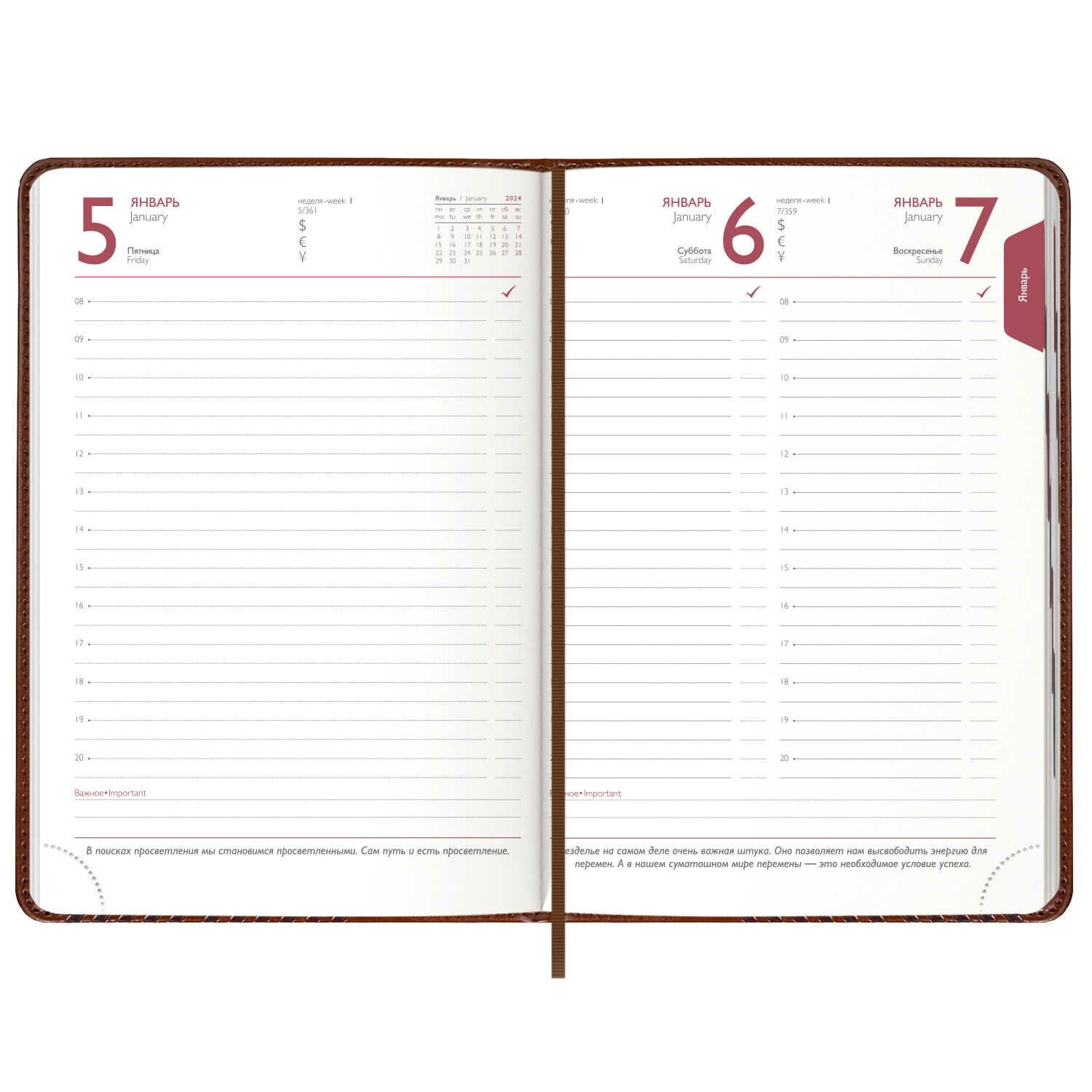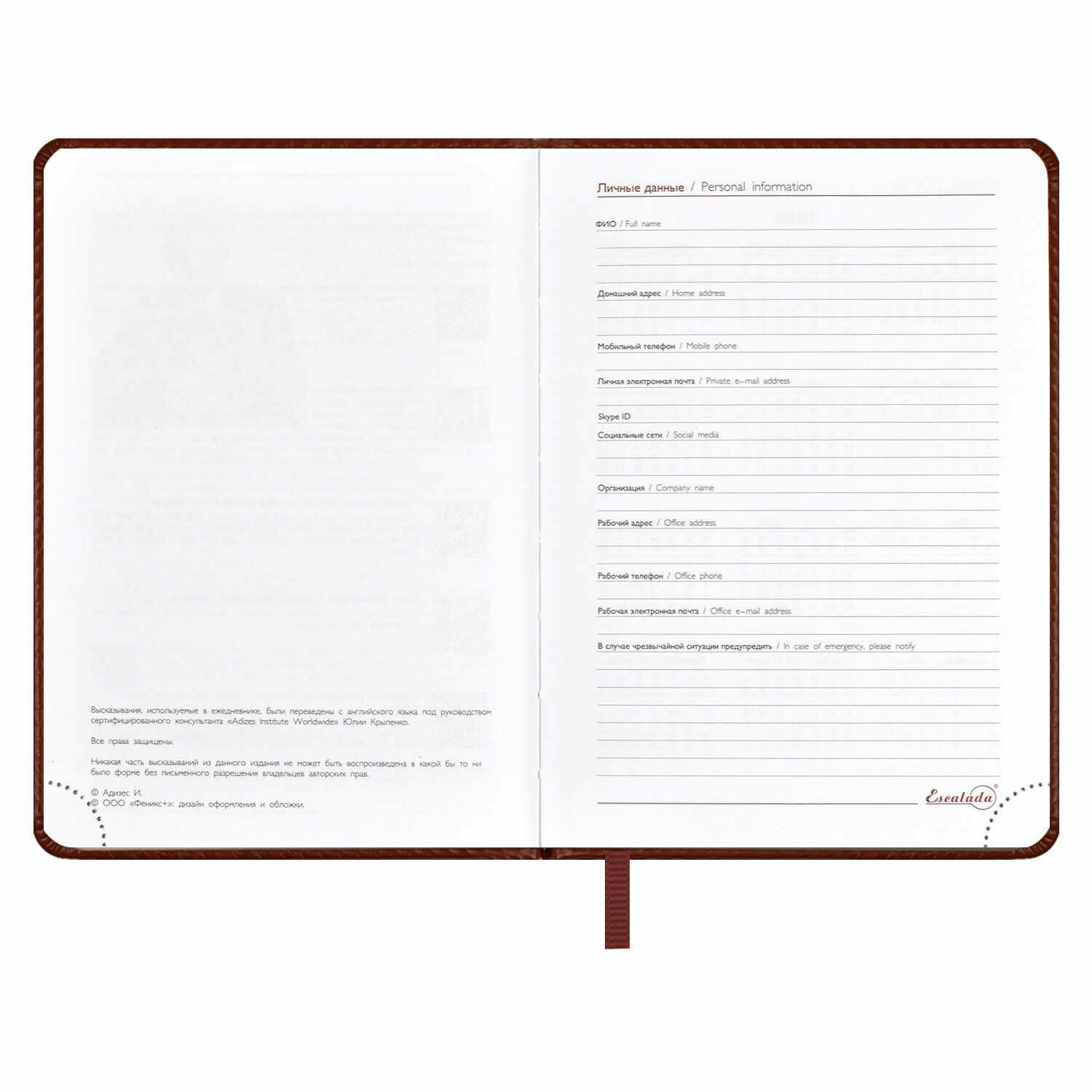 Ежедневник датированный 2024 ESCALADA, формат А6+ (126х174 мм), 176 л. Обложка: твёрдый переплёт с поролоном, блинтовое тиснение, есть, прямой корешок, закруглённые углы обложки. Внутренний блок: ниткошвейный, белый офсет 70 г/м?, печать в две краски (линия), закруглённые углы блока, есть, есть. Красочность форзаца: печать в одну краску. Закладка: одно ляссе. Каптал: есть. Особенности: в блоке использованы мотивирующие высказывания одного из известнейших бизнес-консультантов мира, ведущего специалиста в области эффективного управления бизнес-процессами, преподавателя, автора 29 книг – доктора Ицхака Калдерона Адизеса. Индивидуальная упаковка: промостикер + ПЭТ-пакет.
