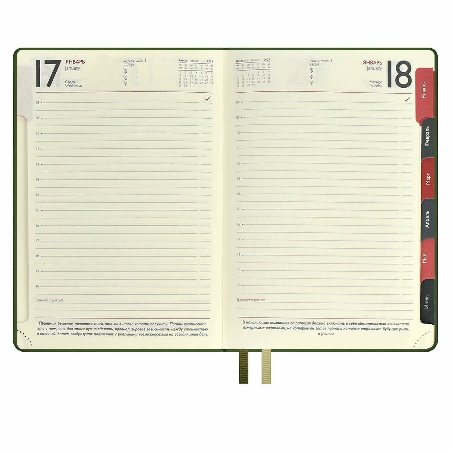 Ежедневник датированный на 2024 год Тиволли глосс оливковый А6+ 176 листов Феникс+