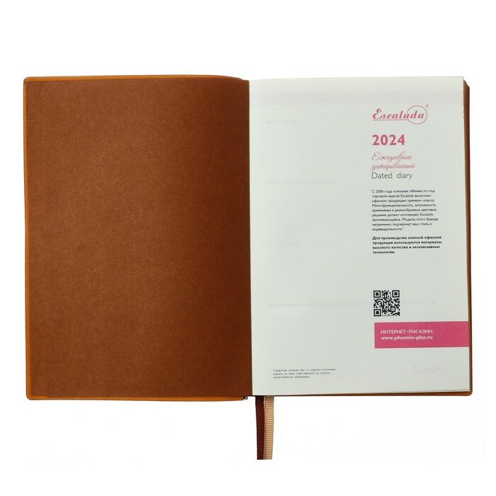 Ежедневник датированный 2024 ESCALADA, формат А6+ (126х174 мм), 176 л. Обложка: мягкий переплёт, запаянный край, полноцветная печать, тиснение фольгой, нет, скруглённый корешок, прямые углы обложки. Внутренний блок: ниткошвейный, кремовый офсет 70 г/м?, печать в две краски (линия), прямые углы блока, нет, есть. Красочность форзаца: печать пантоном. Отделка среза: окрашивание пантоном. Закладка: два ляссе. Каптал: есть. Особенности: в блоке использованы мотивирующие высказывания одного из известнейших бизнес-консультантов мира, ведущего специалиста в области эффективного управления бизнес-процессами, преподавателя, автора 29 книг – доктора Ицхака Калдерона Адизеса. Индивидуальная упаковка: промостикер + ПЭТ-пакет.