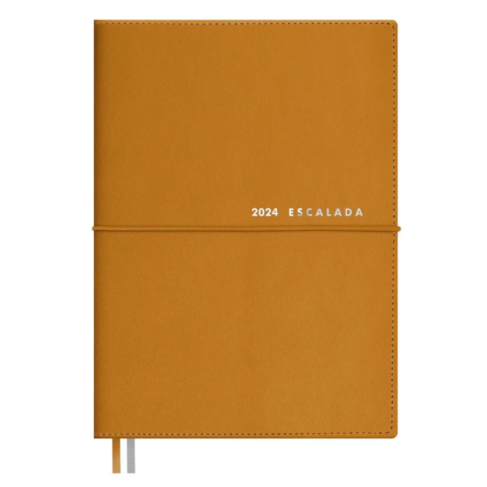 Ежедневник датированный 2024 ESCALADA, формат А6+ (128х176 мм), 128 л. Обложка: мягкий переплёт, тиснение фольгой, есть, скруглённый корешок, прямые углы обложки. Внутренний блок: вставной блок, ниткошвейный, кремовый офсет 70 г/м?, печать в две краски (линия), прямые углы блока, есть. Красочность форзаца: печать пантоном. Закладка: два ляссе. Каптал: нет. Особенности: закладка пластиковая, украшенная тиснением фольгой, в комплекте, запаянный край, застёжка-резинка, съёмная обложка. Индивидуальная упаковка: промостикер + ПЭТ-пакет.