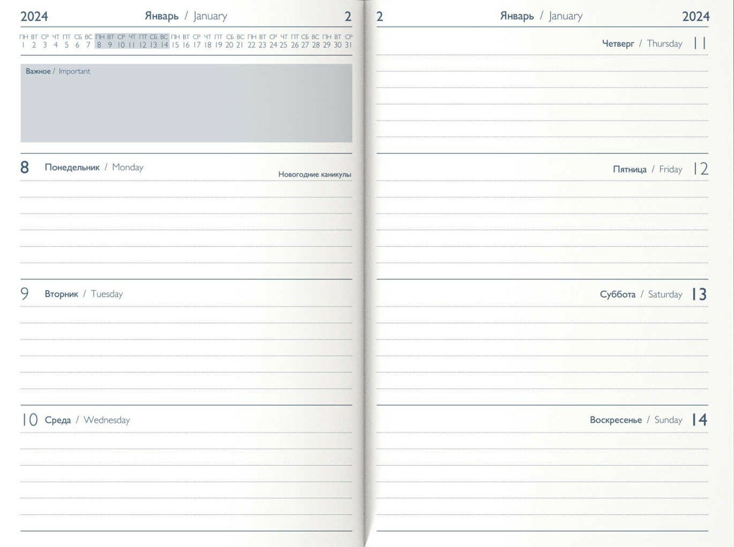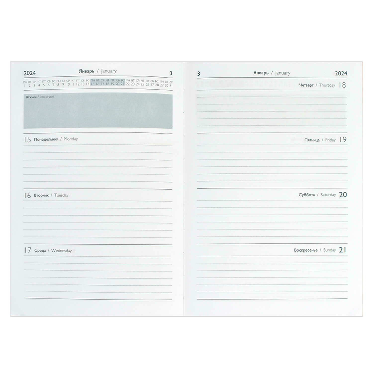 Еженедельник датированный 2024, A5, 80 листов, белый офсет 70 г/м², мятныйПредставляем вашему вниманию еженедельник датированный 2024 года от бренда "Феникс+". Этот продукт отличается высоким качеством и стильным дизайном, который придется по вкусу как мужчинам, так и женщинам.Обложка еженедельника выполнена из искусственной кожи мятного цвета, что придает ему элегантный и современный вид. Материал обложки мягкий на ощупь и приятен на вид, что делает использование ежедневника еще более комфортным.Внутри еженедельника находится 80 листов формата А5, разлинованных в линейку. Это позволяет удобно размещать записи и планировать свое время.Особенностью данного еженедельника является его датированность на 2024 год. Это значит, что вы всегда будете знать, какие дни и события уже запланированы, а какие еще свободны для записи.В целом, еженедельник датированный 2024 от "Феникс+" - это надежный и стильный помощник в планировании вашего времени. Он станет незаменимым аксессуаром для тех, кто ценит комфорт, качество и функциональность.