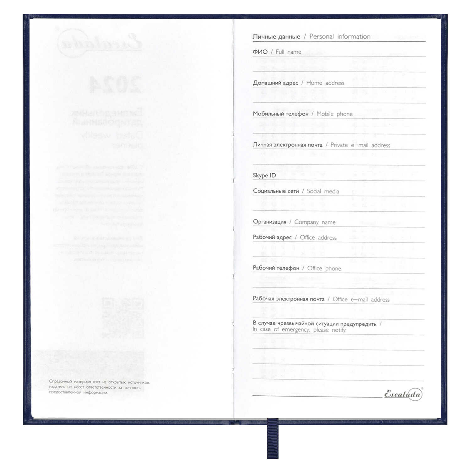 Еженедельник датированный на 2024 год Сариф-эконом синий 64 листа Феникс+