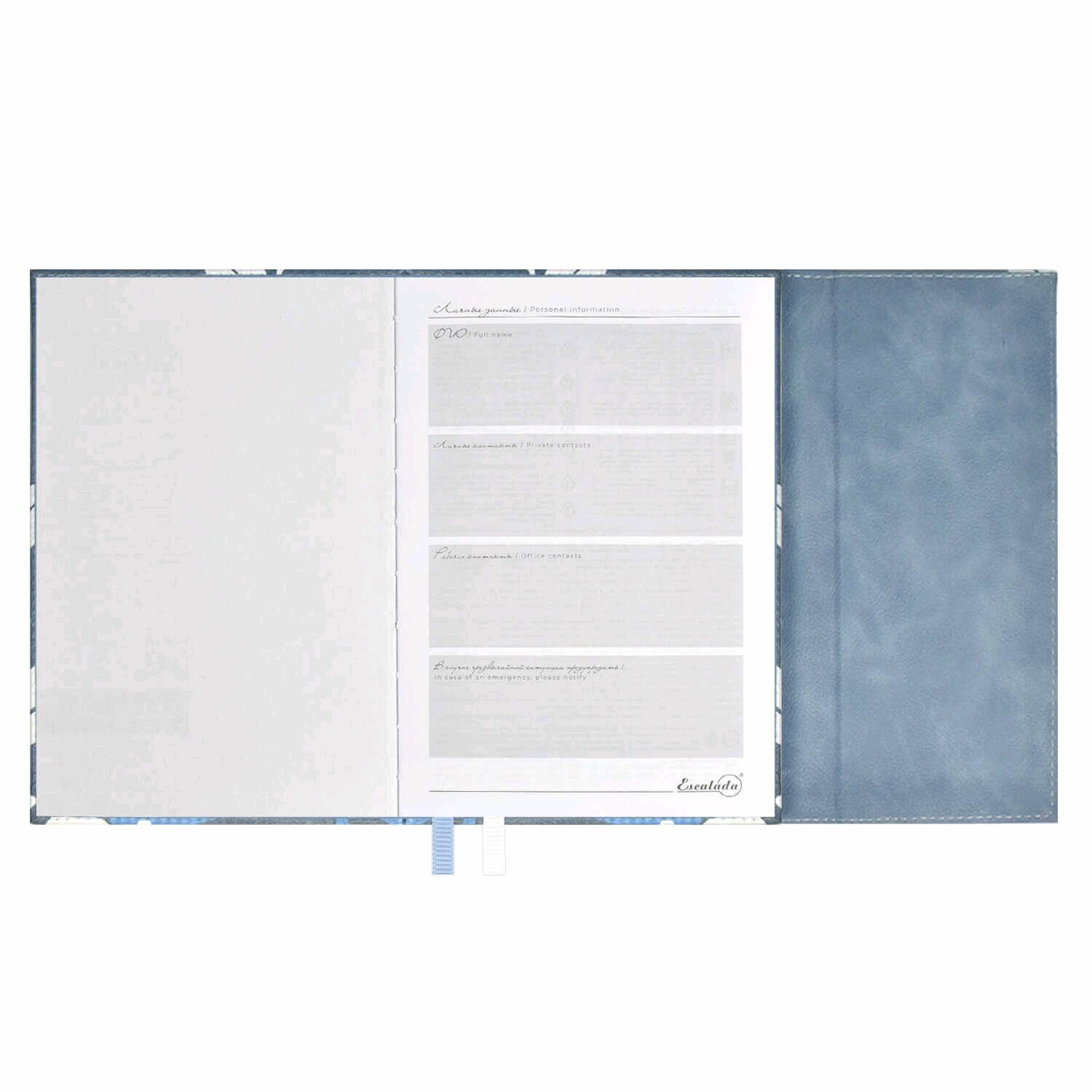 Ежедневник недатированный ESCALADA, формат А5 (150х211 мм), 160 л. Обложка: твёрдый переплёт с поролоном, шелкография в две краски, есть, скруглённый корешок, прямые углы обложки. Внутренний блок: ниткошвейный, кремовый офсет 70 г/м?, печать в одну краску (линия), прямые углы блока, нет, есть. Красочность форзаца: печать пантоном. Закладка: два ляссе. есть. Особенности: магнитный клапан. Индивидуальная упаковка: ПЭТ-пакет.