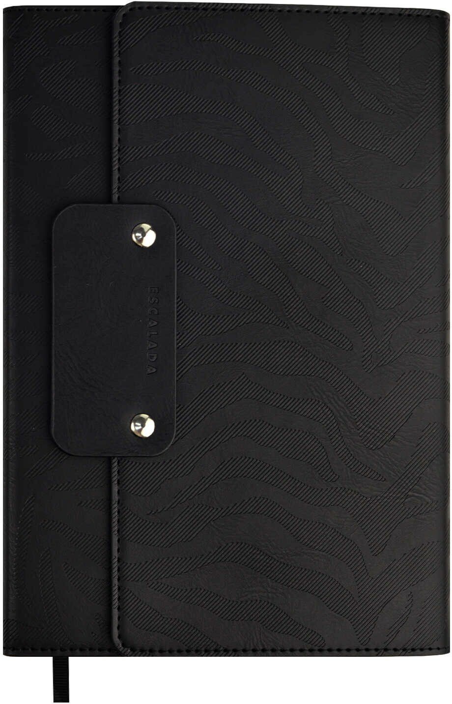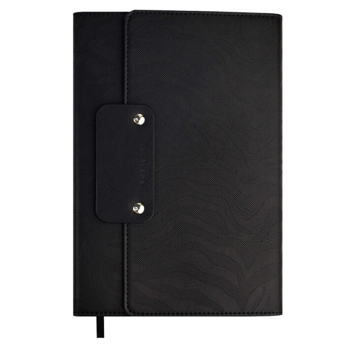 Ежедневник недатированный ESCALADA, формат А5 (146x211 мм), 160 л. Обложка: мягкий переплёт, запаянный край, блинтовое тиснение, есть, скруглённый корешок, закруглённые углы обложки. Внутренний блок: ниткошвейный, кремовый офсет 70 г/м?, печать в одну краску (линия), закруглённые углы блока, нет, есть. Красочность форзаца: печать пантоном. Закладка: одно ляссе. есть. Особенности: магнитный клапан. Индивидуальная упаковка: ПЭТ-пакет.