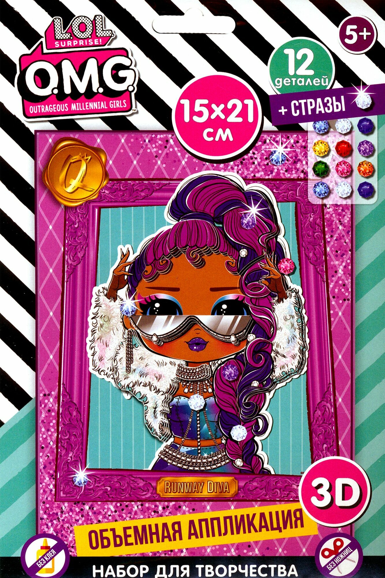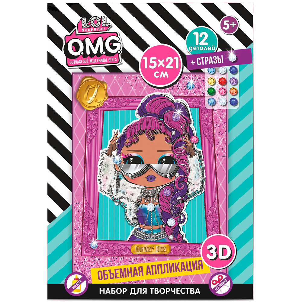 Яркие незабываемые куклы L.O.L. SURPRISE! OMG! представлены теперь в технике объемной аппликации. Вырубленные детали не требуют использования ножниц, для соединения слоев в наборе предусмотрен двусторонний скотч. Разноцветные переливающиеся стразы набора придадут дополнительный блеск творческому результату. Прекрасный подарок для блестящего результата!