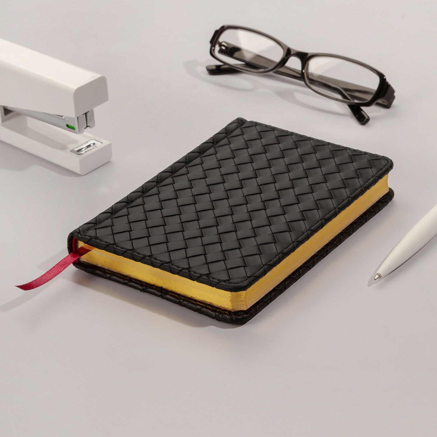 Традиции, строгость и итальянский стиль соединились в дизайне недатированного ежедневника «Magnum» от Bruno Visconti. При создании его обложки использовалась уникальная технология плетения «Intrecciato», заключающаяся в переплетении тонких кожаных лент и образуя таким образом ромбовый узор. Подобная техника придает прочности без потерь гибкости. Обложка, прошитая декоративной нитью в тон, золотой срез, скругленные углы блока, бордовое ляссе – традиционные характеристики ежедневников, подчеркивающие статус его владельца. Ежедневник формата A6 имеет блок, изготовленный из белой бумаги, плотностью 70 г/кв. м и содержит 272 страницы, 19 из которых – телефонная книга, 14-справочная информация.