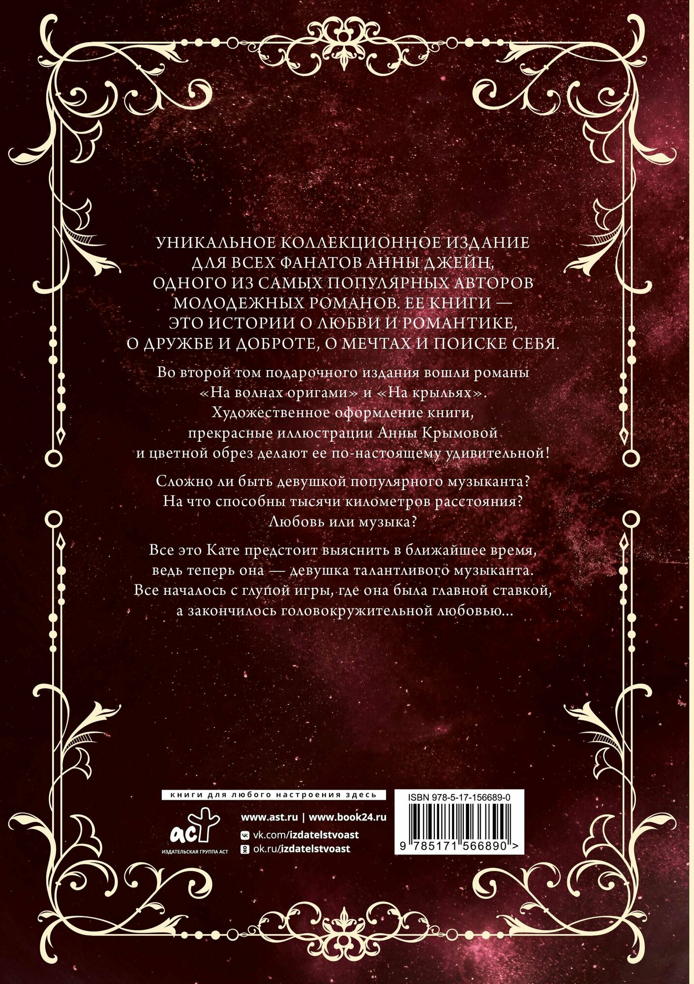 Уникальное коллекционное издание для всех фанатов Анны Джейн, одного из самых популярных авторов молодежных романов. Ее книги — это истории о любви и романтике, о дружбе и доброте, о мечтах и поиске себя. Во второй том подарочного издания вошли романы "На волнах оригами" и "На крыльях". Художественное оформление книги, прекрасные иллюстрации Анны Крымовой и цветной обрез делают ее по-настоящему удивительной! Сложно ли быть девушкой популярного музыканта? На что способны тысячи километров расстояния? Любовь или музыка? Все это Кате предстоит выяснить в ближайшее время, ведь теперь она — девушка талантливого музыканта. Все началось с глупой игры, где она была главной ставкой, а закончилось головокружительной любовью...