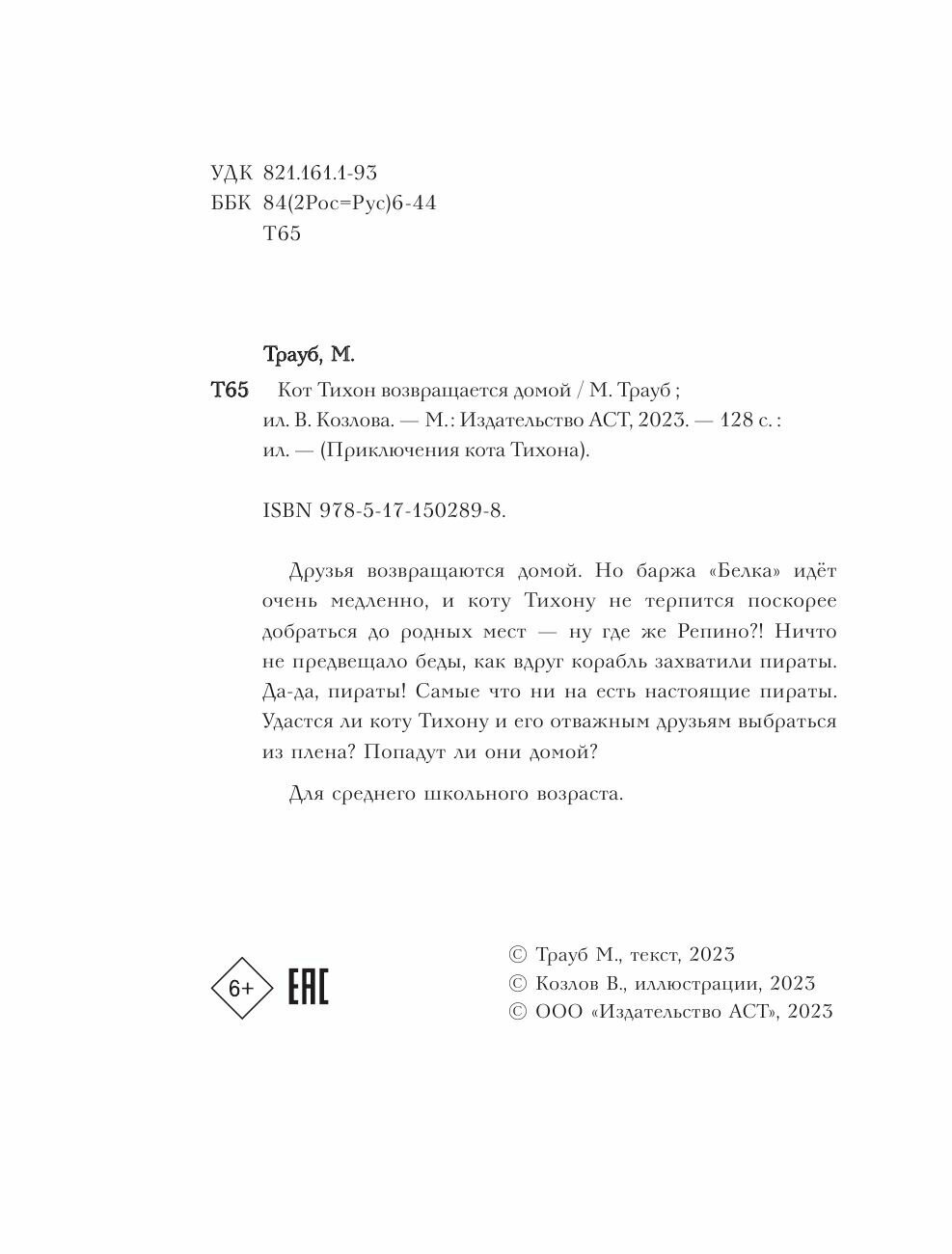Кот Тихон возвращается домой (Маша Трауб); Издательство АСТ, 2023