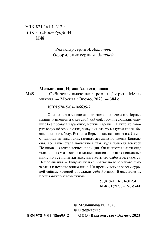 Книга: Сибирская амазонка (Ирина Александровна Мельникова); Эксмо, 2024