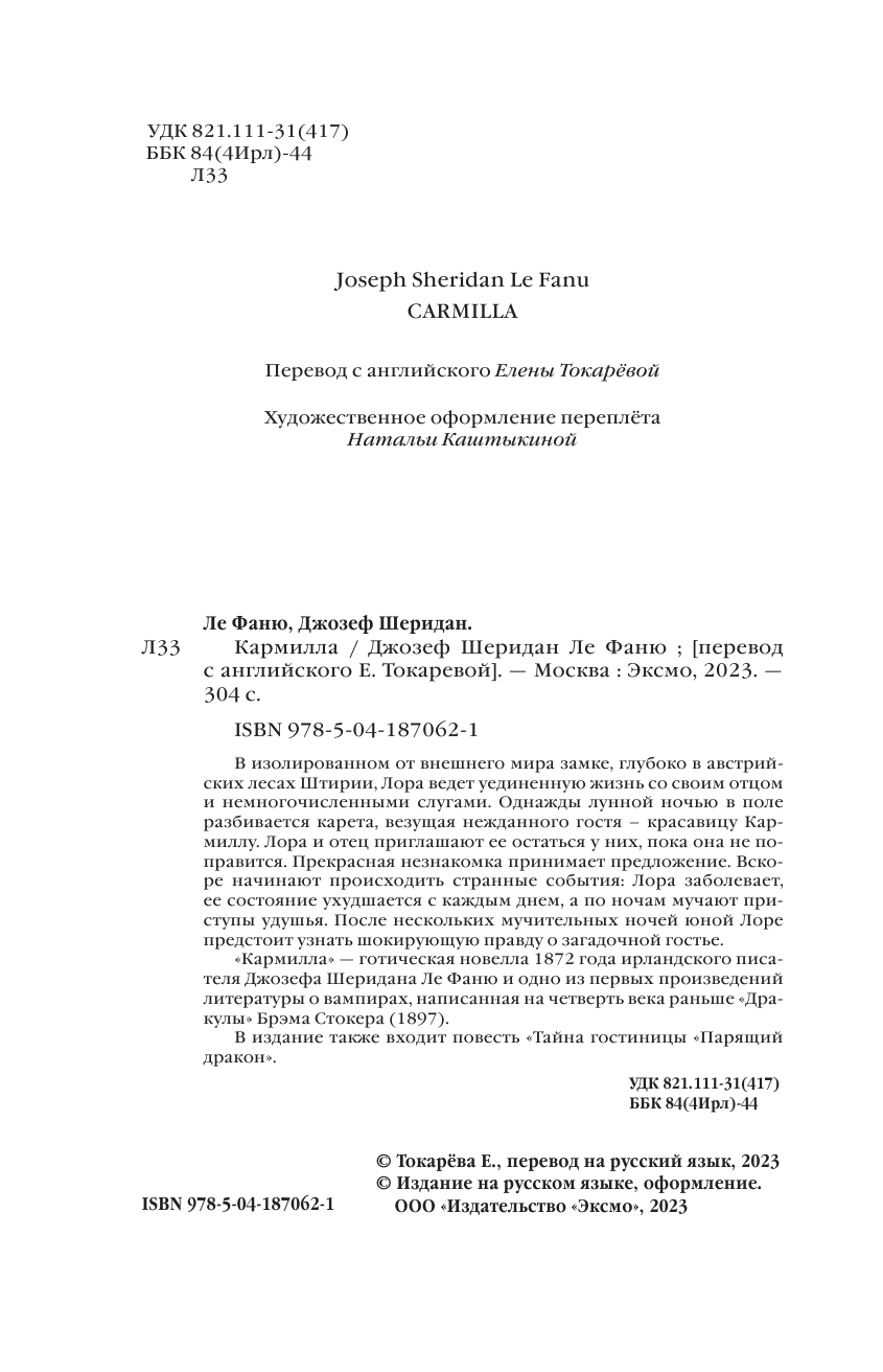 Книга: Кармилла (Ле Фаню Джозеф Шеридан); ООО "Издательство "Эксмо", 2024