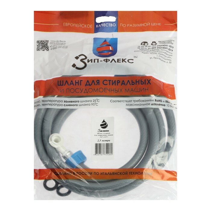 Данный шланг предназначен для заливания воды в стиральную машину. Изделие имеет гибкую конструкцию. Материал изготовления обеспечивает модели прекрасные прочностные характеристики и устойчивость к износу. На концах шланга предусмотрено специальное крепление, обеспечивающее надежное соединение с одной стороны со стиральной машиной, с другой - со сливной трубой.