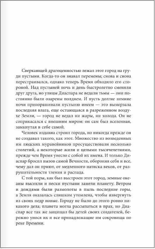 Диаспар – город будущего, жители которого защищены от суровых пустынь умирающей Земли, счастливы и благополучны. Они бессмертны – и потому не задумываются ни о прошлом, ни о будущем. Лиз – долина, также надежно защищенная от ядовитых щупалец пустынь высокими горами, стала домом для совсем других людей. В отличие от диаспарцев они смертны, и не утратили человеческих чувств – взаимовыручки, любви, единения с природой, – однако нередко относятся к чужакам с недоверием, будучи телепатами.