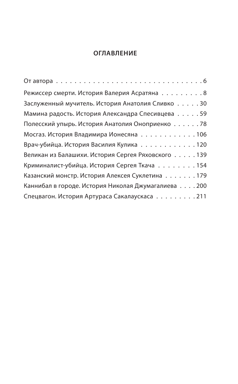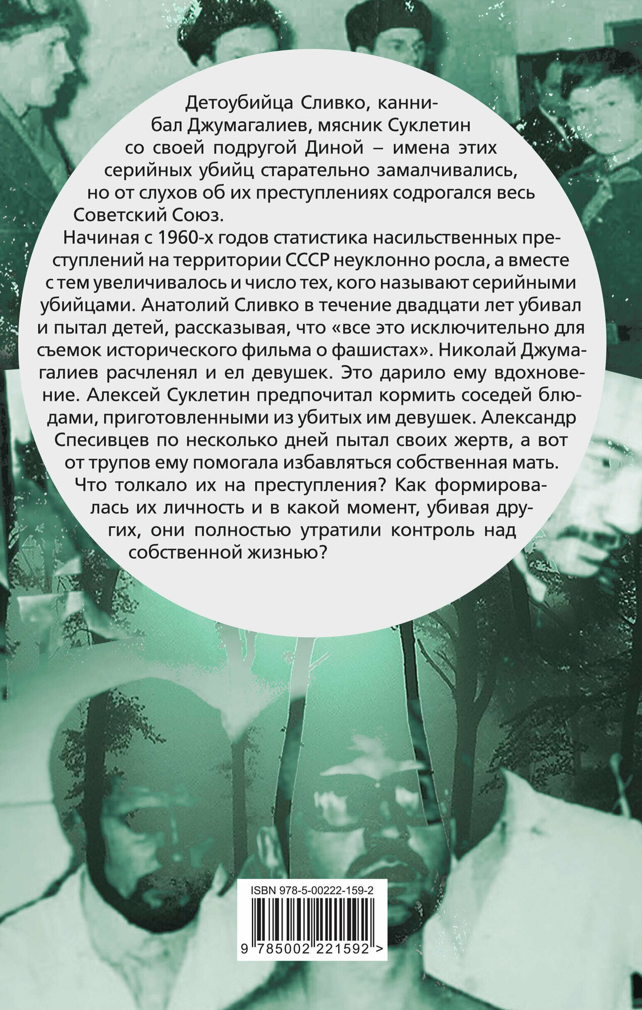 Начиная с 1960-х годов статистика насильственных преступлений на территории СССР неуклонно росла, а вместе с тем увеличивалось и число тех, кого называют серийными убийцами. Анатолий Сливко в течение двадцати лет убивал и пытал детей, рассказывая, что «все это исключительно для съемок исторического фильма о фашистах». Николай Джумагалиев расчленял и ел девушек. Это дарило ему вдохновение. Алексей Суклетин предпочитал кормить соседей блюдами, приготовленными из убитых им девушек. Александр Спесивцев по несколько дней пытал своих жертв, а вот от трупов ему помогала избавляться собственная мать.